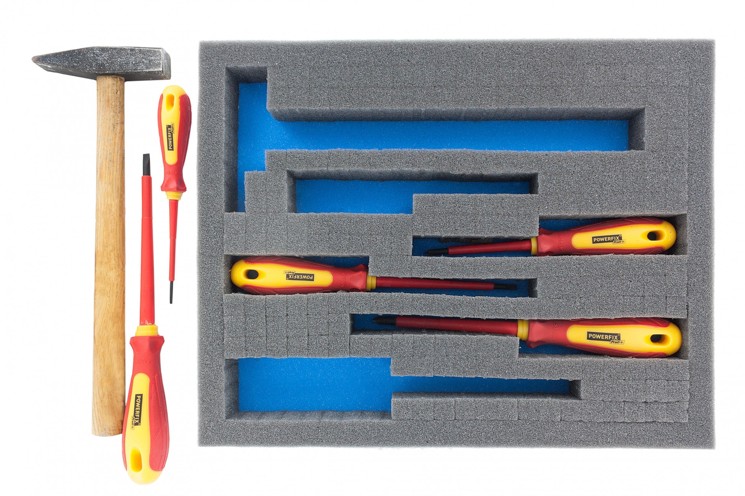 Colored foam trays for creating of individual shadowboards. Together with our gray pick and pluck foams you can create very quickly and easy two-colored inserts.
