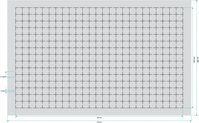- Pre-punched grid with 20 mm x 20 mm size.