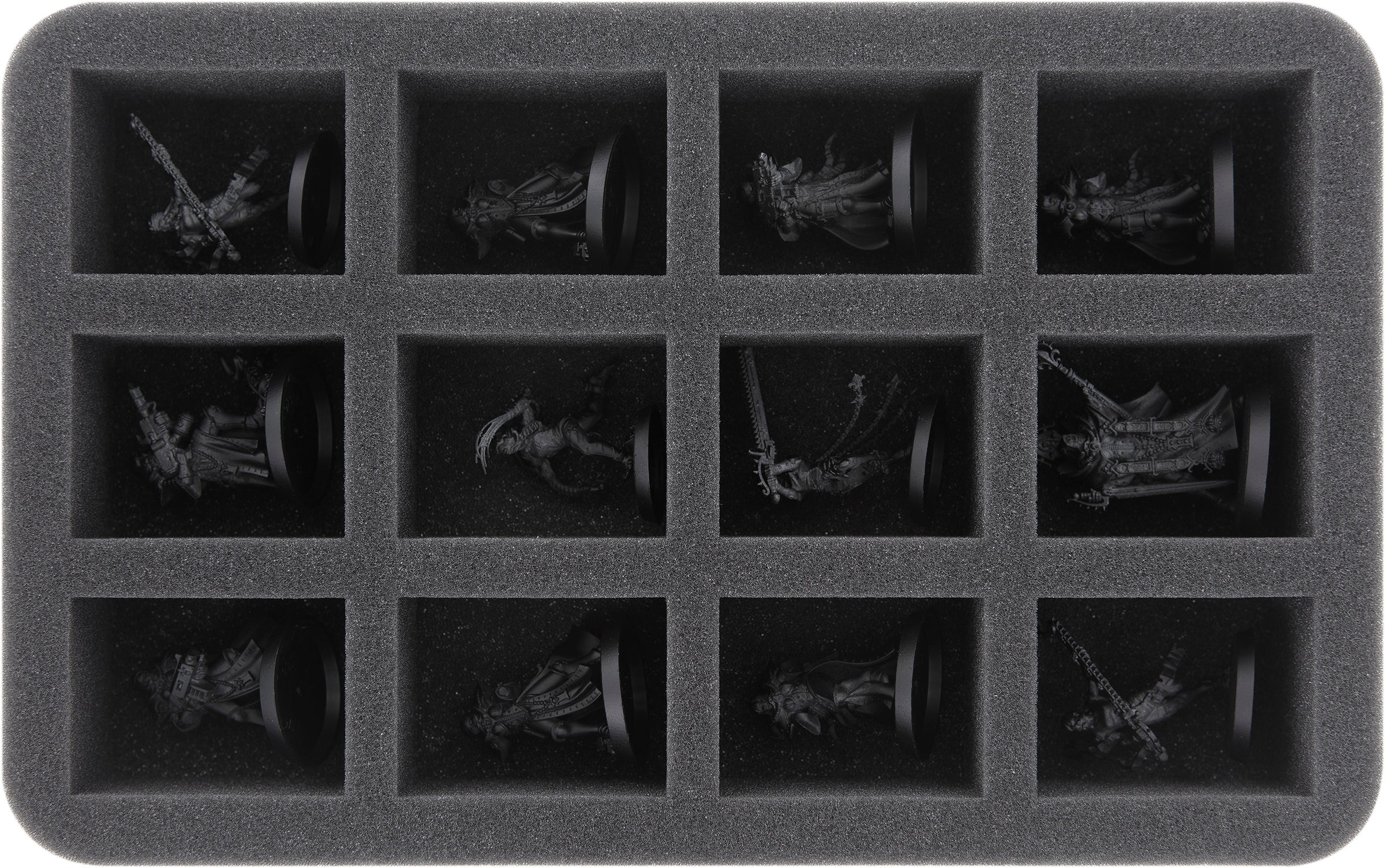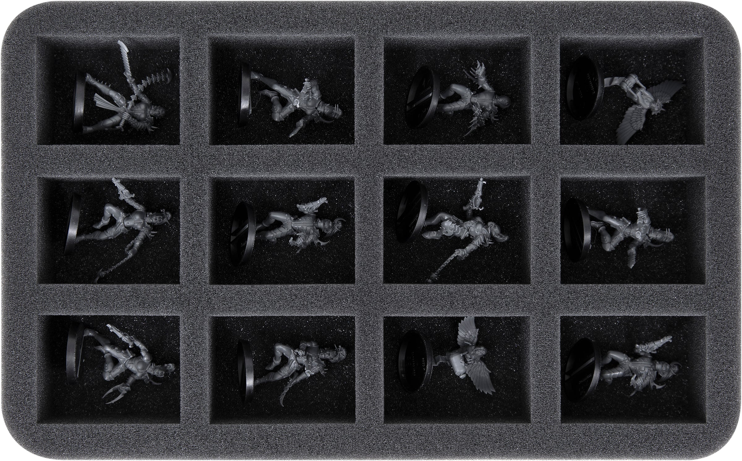 - 1 Half-Size foam tray with 12 compartments for standard infantry like Retributors, Armorium Cherubs and models with similar dimensions (HS040A028)