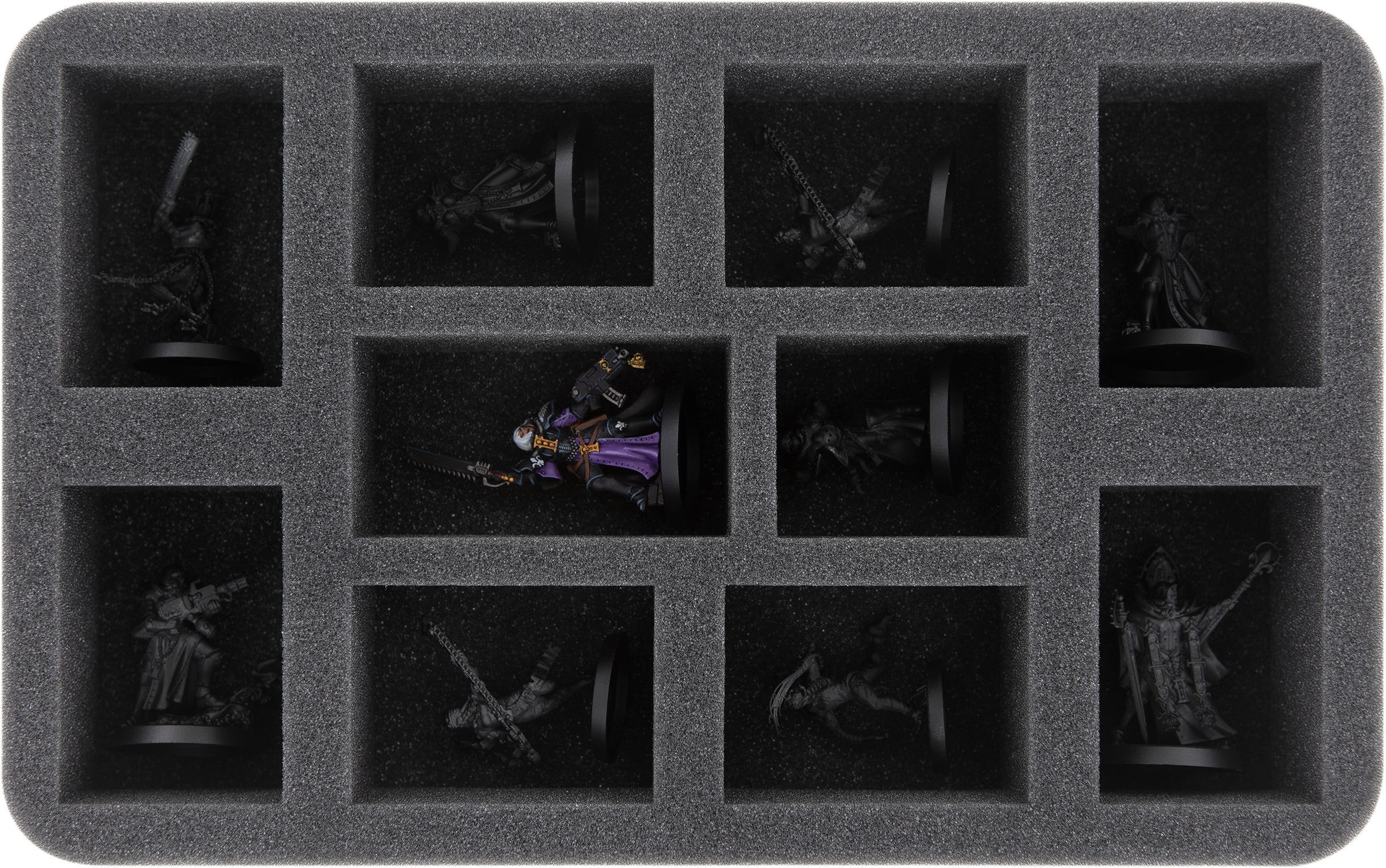 - 1 Half-Size foam tray with 10 compartments for bulky standard infantry like Sisters Repentia, Arco-flagellants, Battle Sisters and models with similar dimensions (HS050A032)