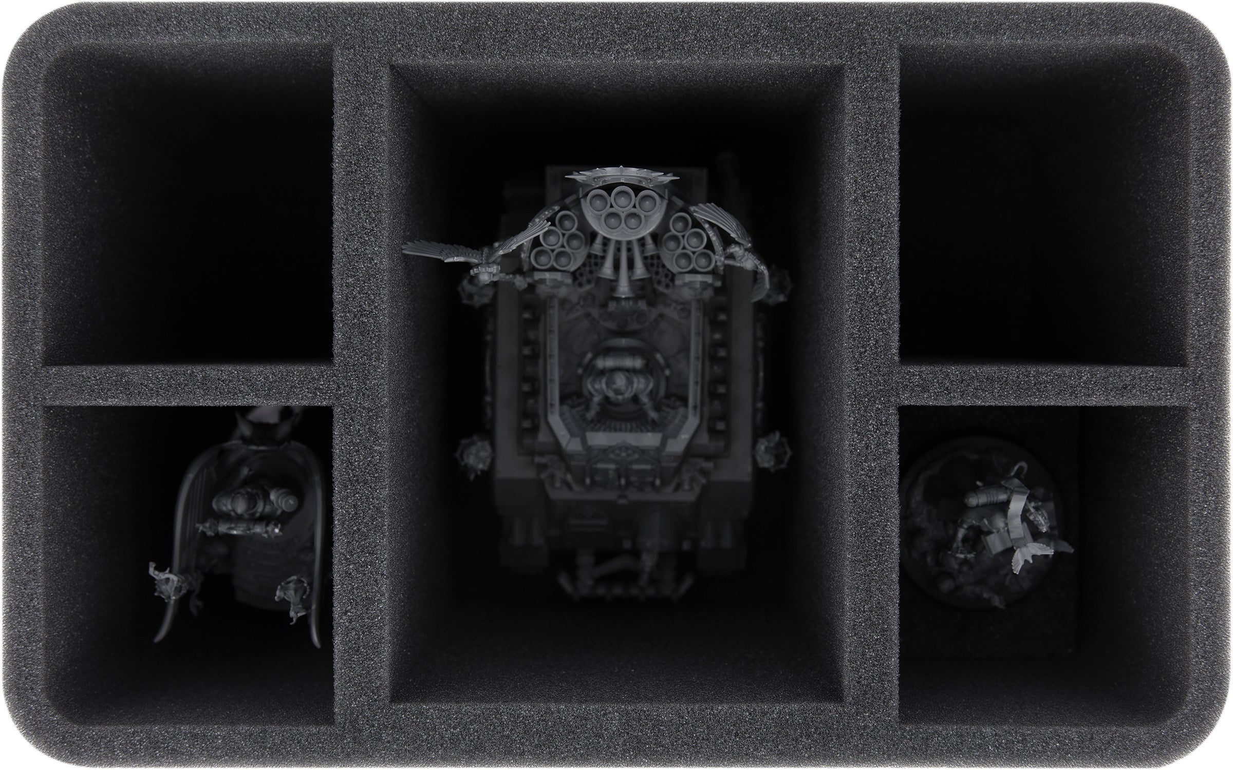 - 1 Half-Size foam tray with 5 compartments for one Exorcist and 4 larger models like Junith Eruita, Hospitaller and models with similar dimensions (HS140A001)