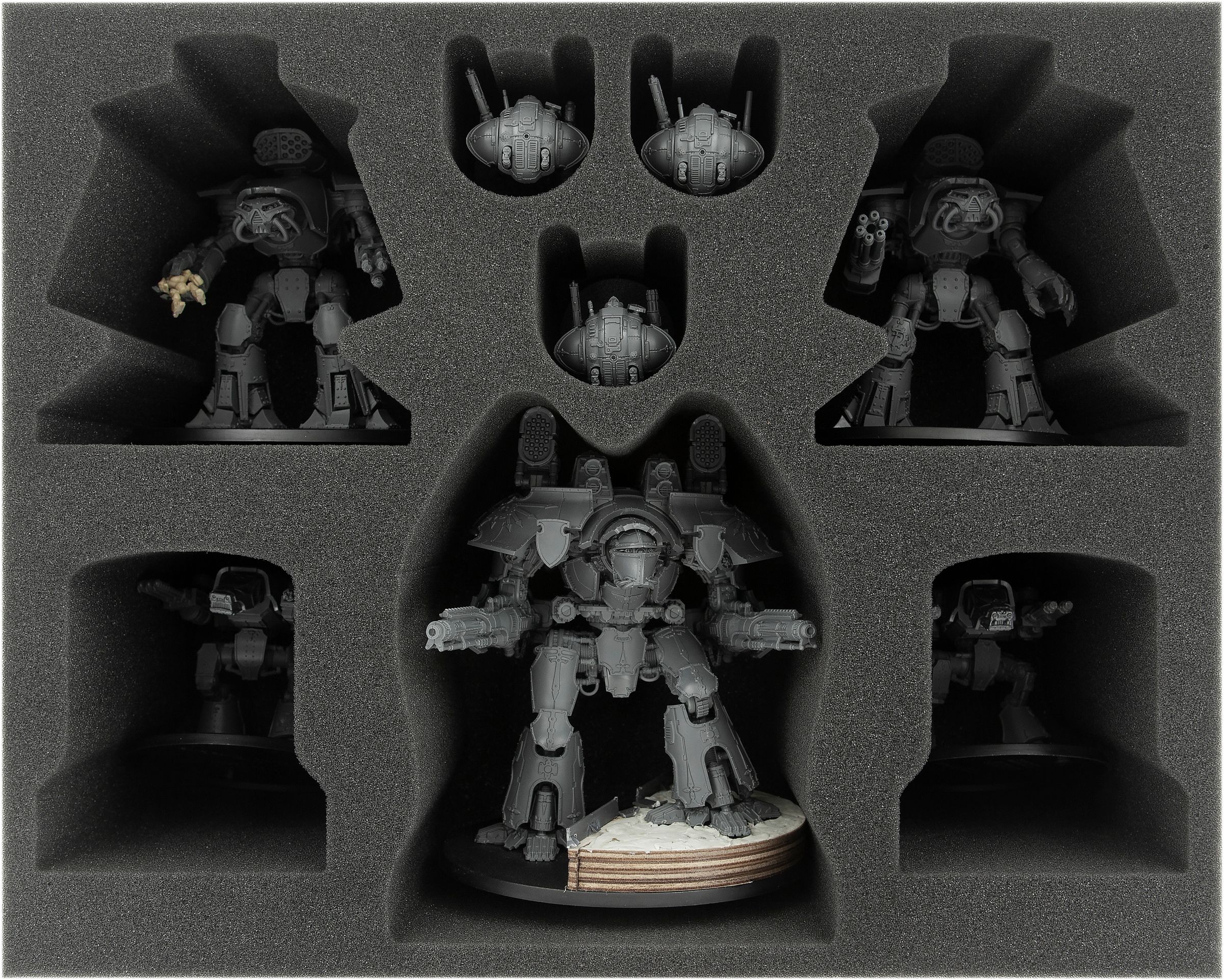 On the battlefields, these gigantic, humanoid war machines can withstand several cannon salvos. Before and after that, however, you should give your precious detailed miniatures a little more protection. With this Full-Size foam tray your Titans, Warhounds and Questoris Knights are well prepared for the way to next battle.