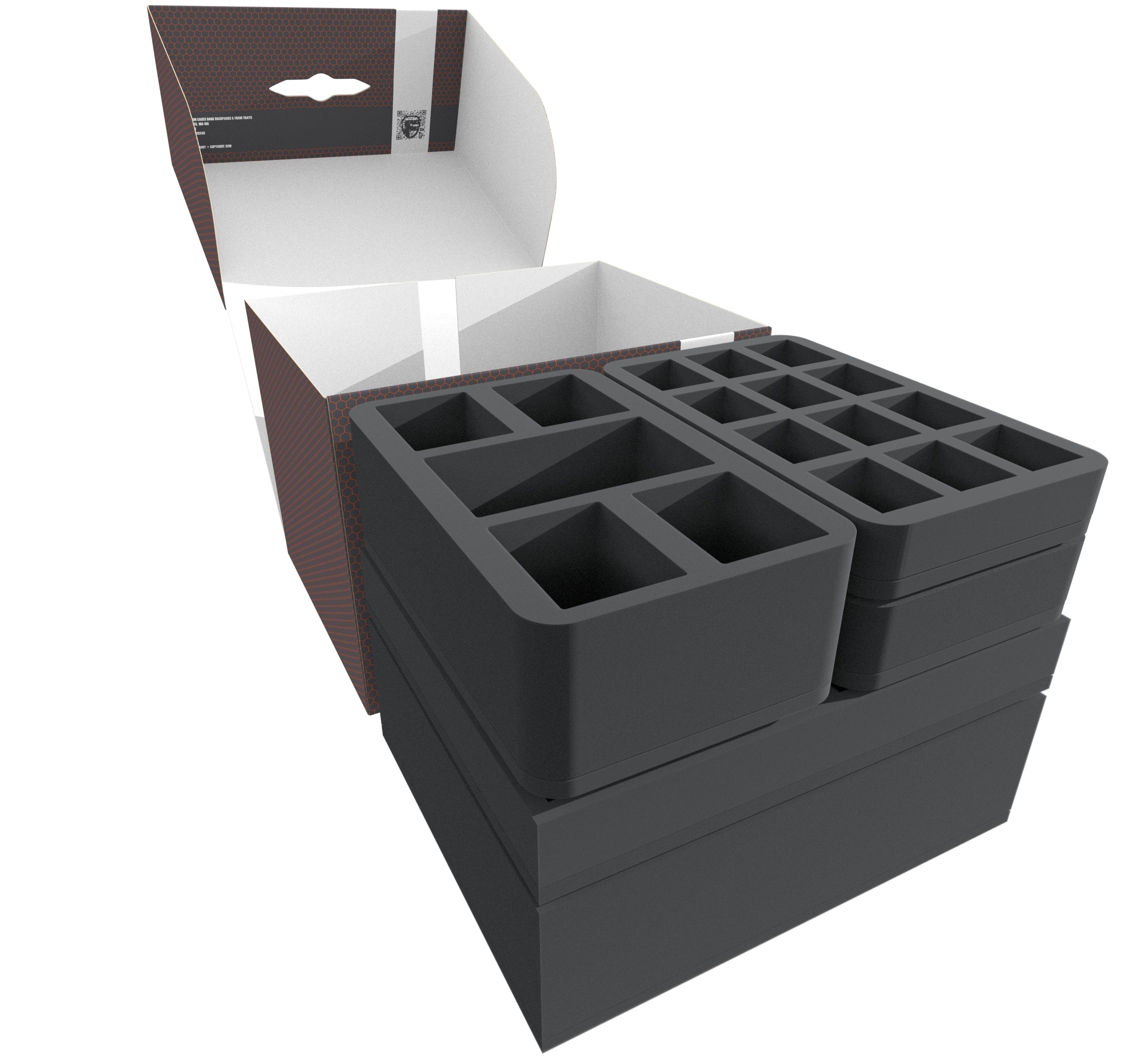 Two Full-Size and three Half-Size foam trays provide optimal protection for your models. From the Wraithfighter to the Avatar of Khaine, each model gets its own compartment. Custom-fit cut compartments ensure your figures stay securely in place, even when transported across fallen Crone Worlds. The soft foam reliably protects your miniatures from damage, ensuring your painted units arrive at the tabletop without scratches or chipped paint.