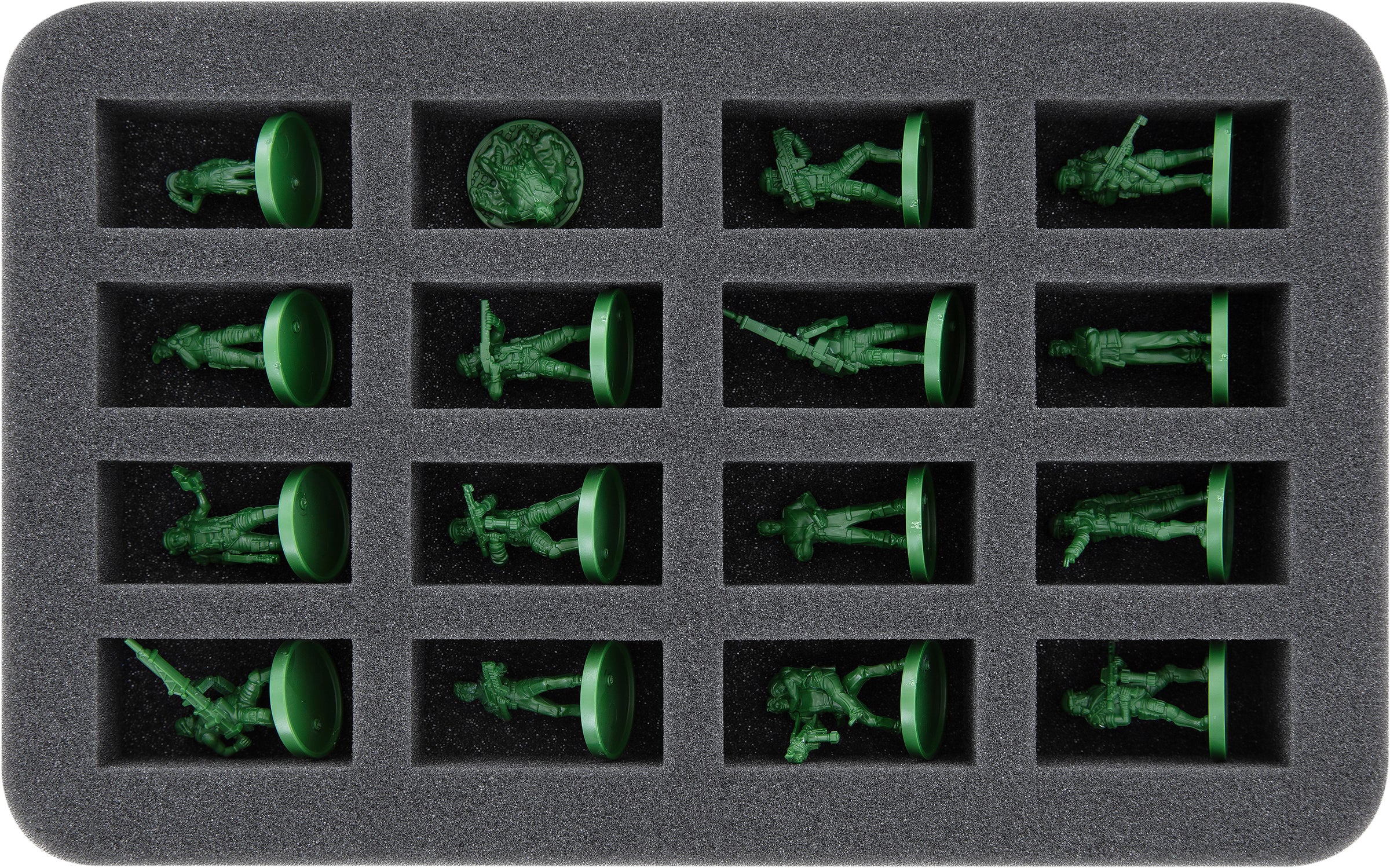 Thanks to the custom-fit cut, the miniatures have a tight fit. Even while transporting the miniatures through alien-infested territory, the figures do not slip and stay in place. The soft, fine-pored foam protects delicate details, such as the Marines' weapons or the aliens' tails, from breaking off and the colors of your painted models from scratches and paint abrasion.