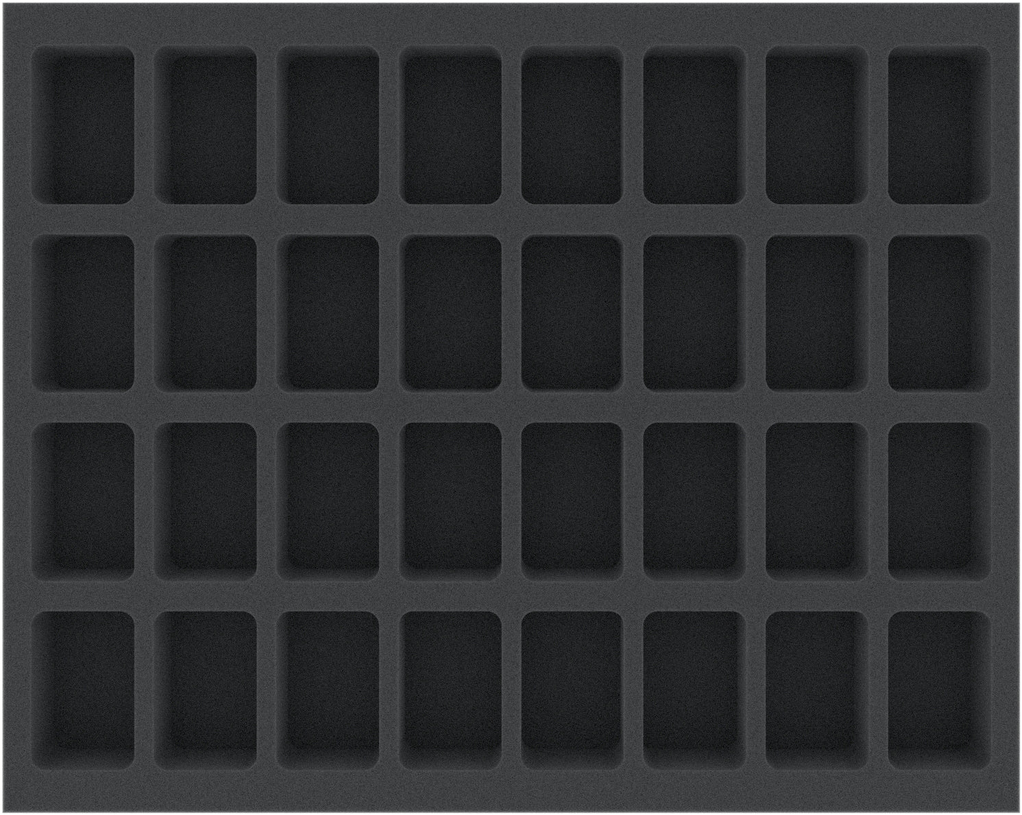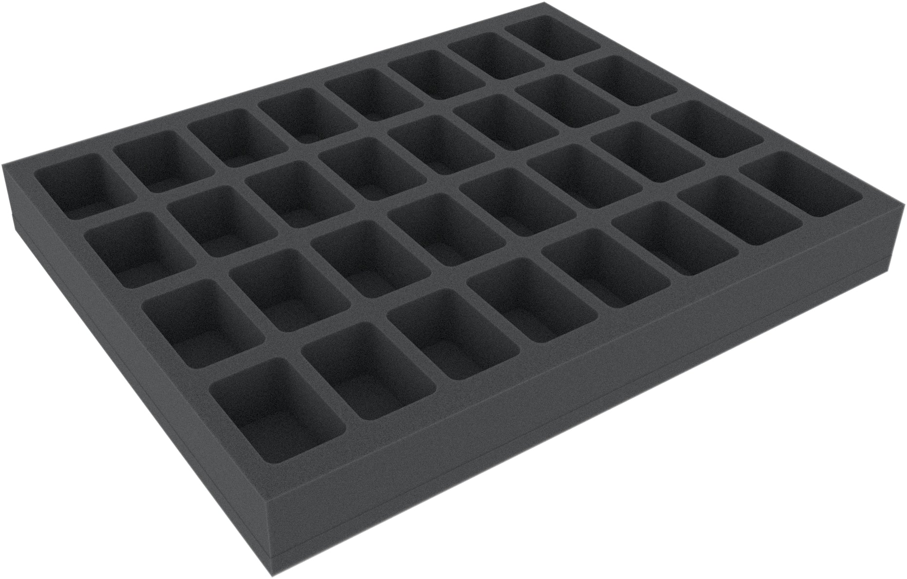 Feldherr 40 mm Full-Size foam tray with 32 compartments. Universal-cut compartments provide optimum protection for various miniatures and accessories.