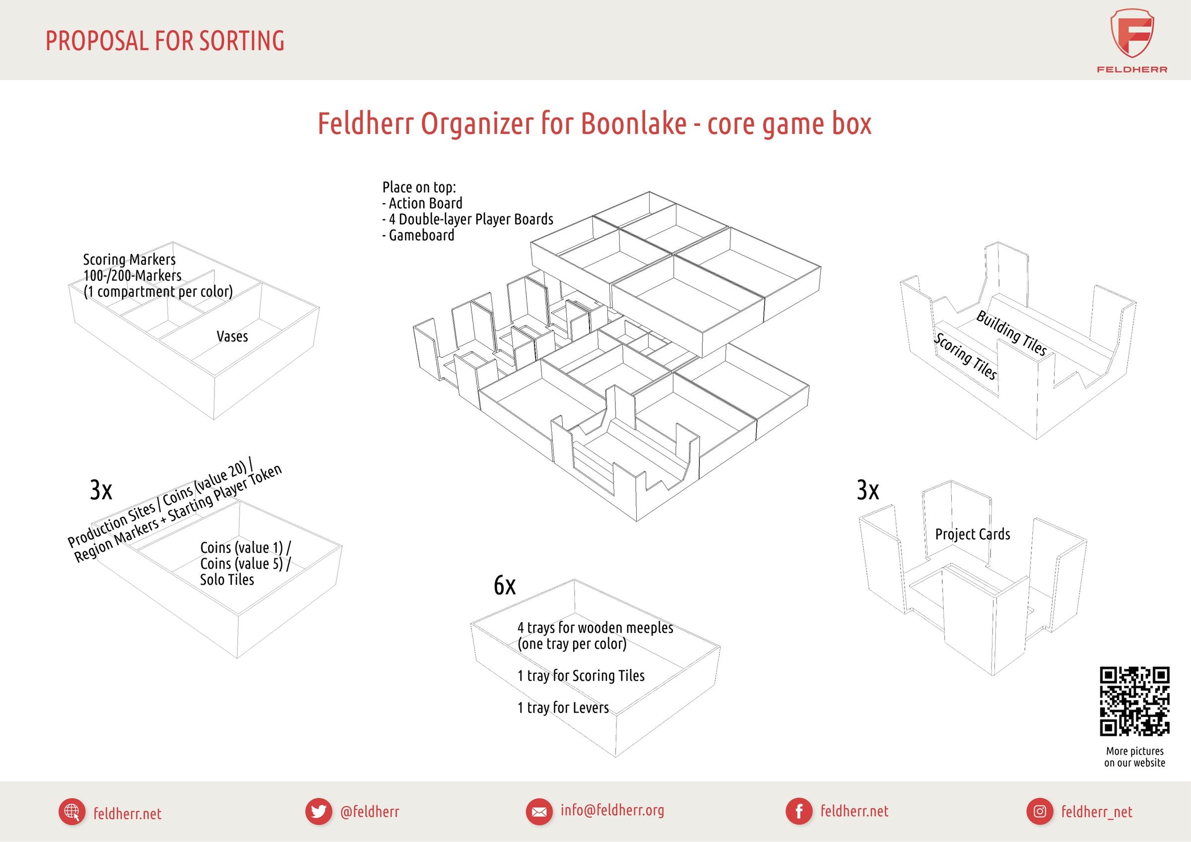 So that your big dream of a perfect community doesn't turn into a disaster, we have the matching Feldherr plastic Organizer for your core game box. The Set supports you in creating order and a better life at Boonlake. In no time, you have your game material under control and mastered the situation.