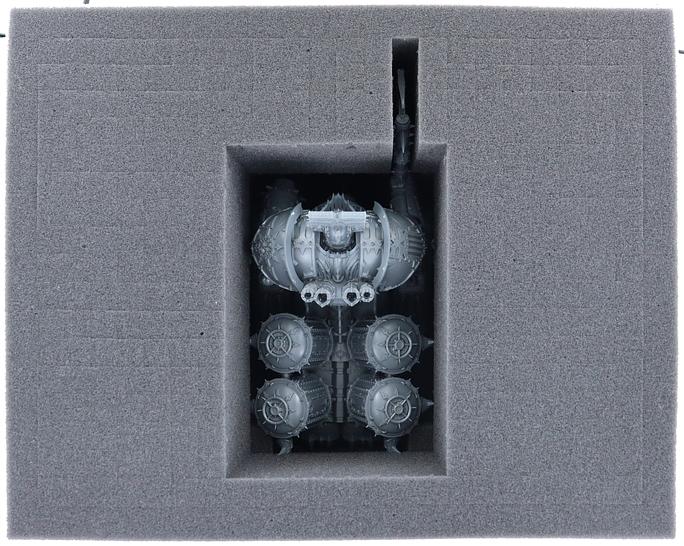 With the Feldherr Full-Size Pick & Pluck foam set, the safe transport of the elaborately designed model is no problem. Create a tailor-made foam tray in which you can bring your Khorne Lord of Skulls safely and undamaged to the gaming table and strike fear into your opponents.