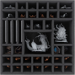 Optimized storage for Cthulhu: Death May Die ensures that minis, cards, markers and modular plans are safely sorted, protected and quickly ready to play - at home as well as for transport to game nights.