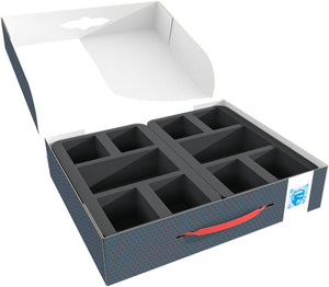 • Separate areas for sleeved cards, scenario material and markers for faster assembly and disassembly.