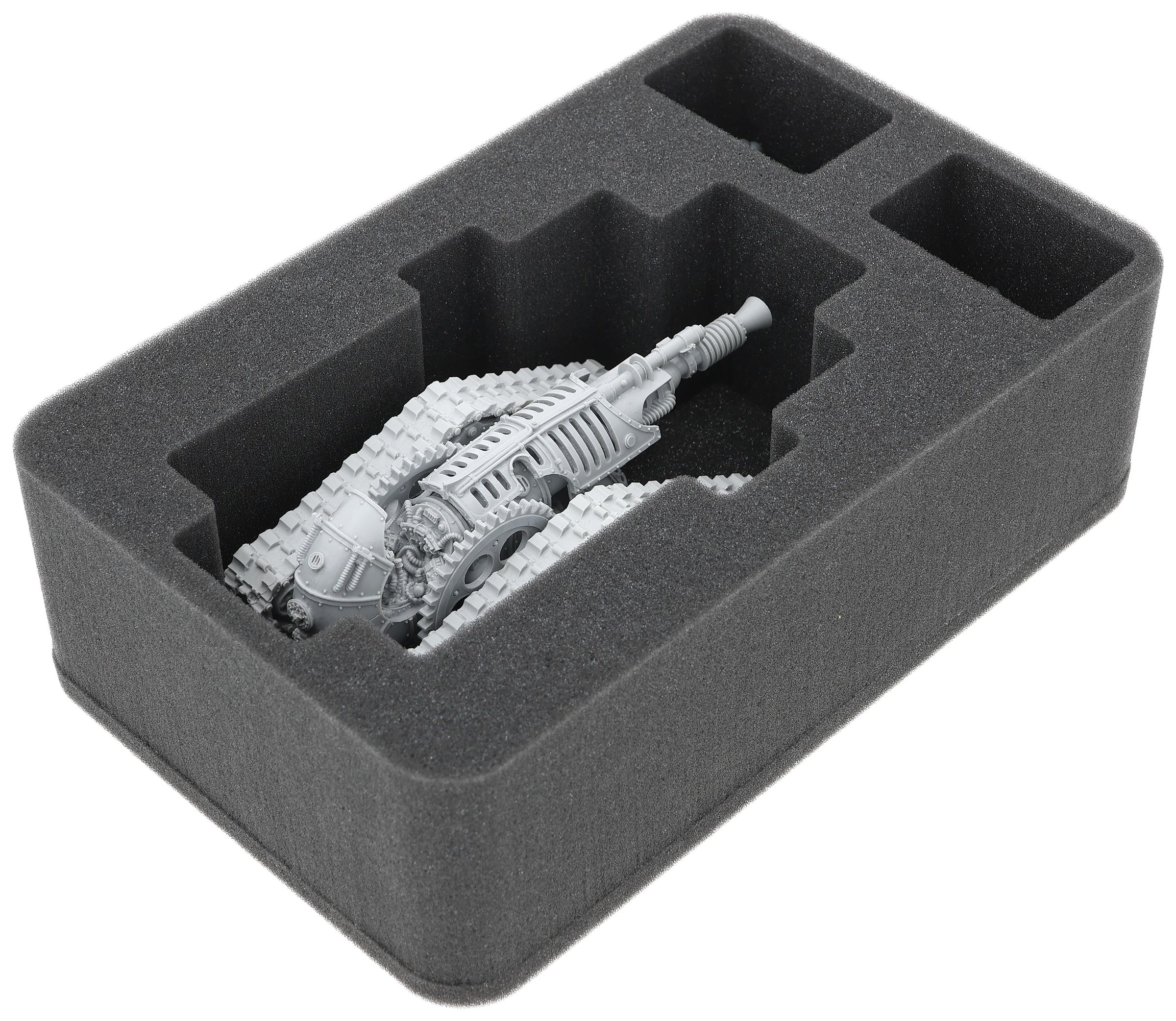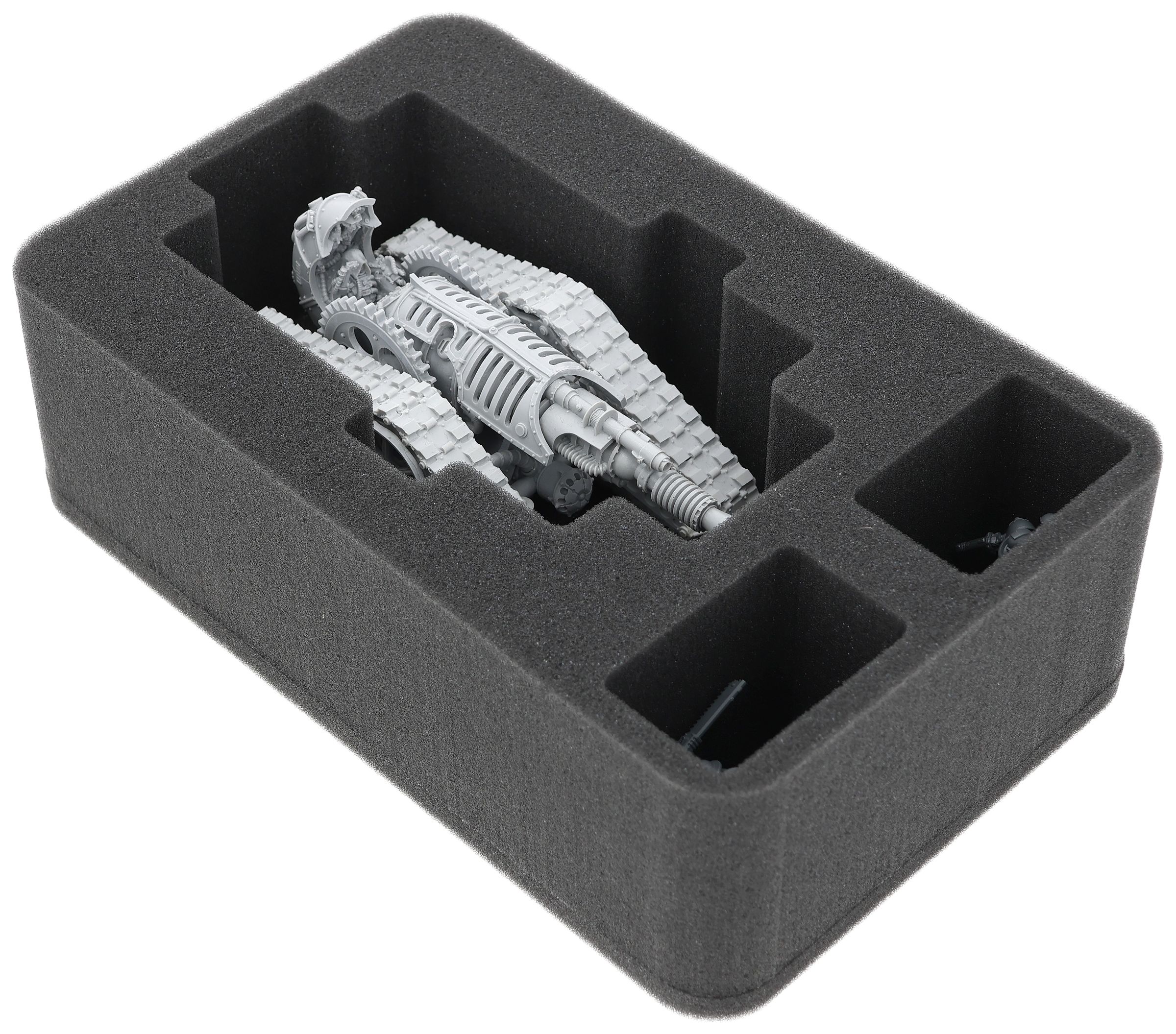 On this Feldherr foam tray you have space for up to 3 miniatures of your army. The insert is especially suitable for storing the Mechanicum Krios Battle Tank and similar sized models. The two adjoining compartments give you space for two smaller models.