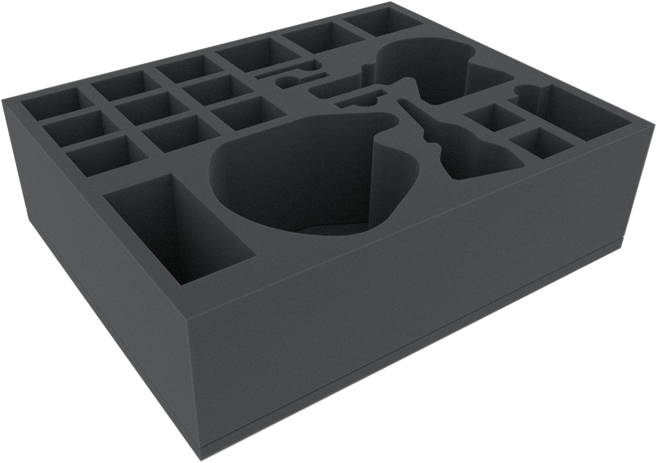 The custom designed Feldherr foam tray for the "Vordt of the Boreal Valley" expansion and the "Iron Keep" expansion offers 17 miniature-precise cut compartments for Vordt, Smelter Demon, Sir Alonne and all other figures from these two expansions. The soft foam ensures that during storage and transport, the painted miniatures are not scratched or flaked and sensitive parts do not bend or break.