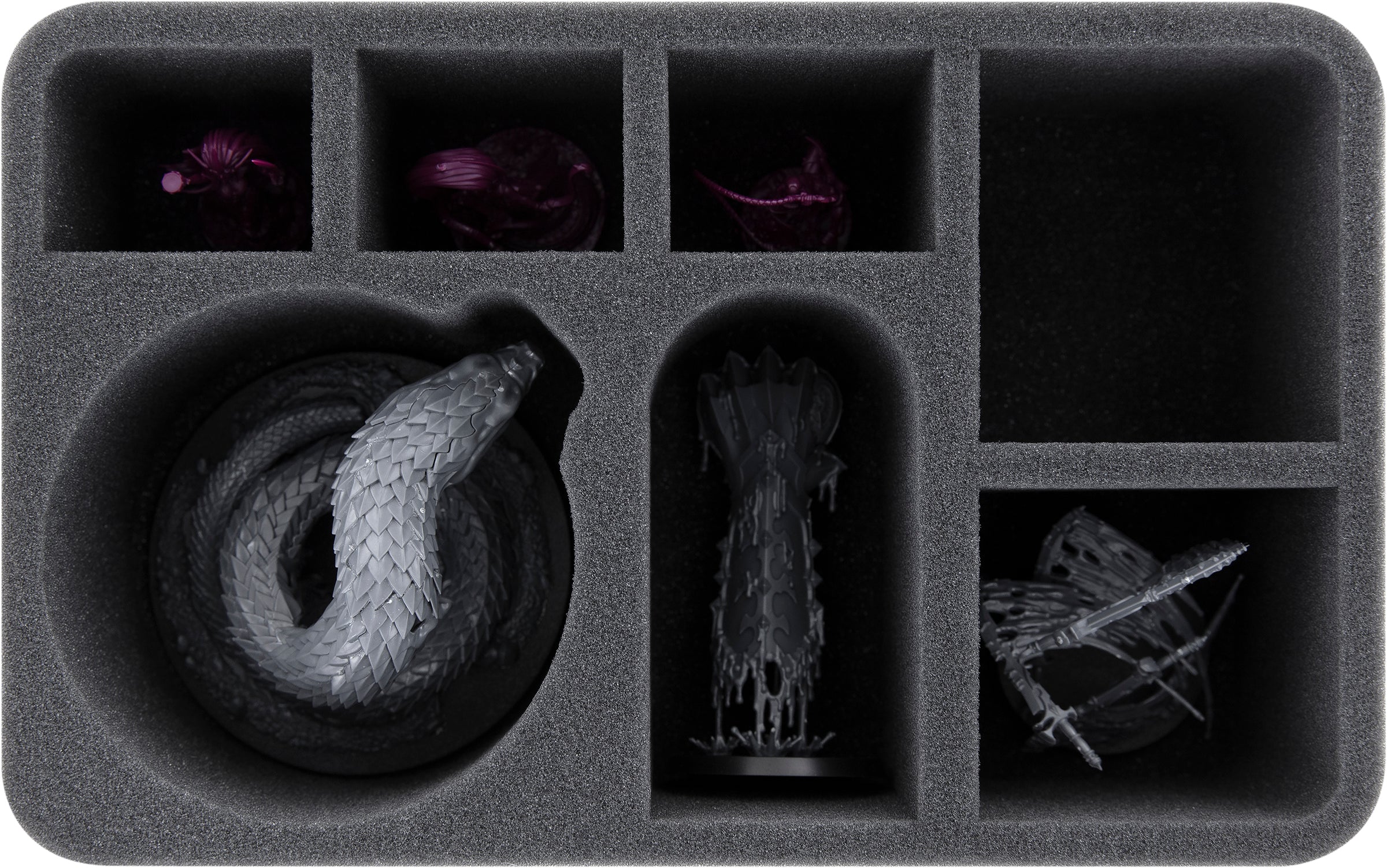 Even the most powerful spell can be damaged by broken and bended parts. To make sure that doesn't happen to you, this Feldherr foam tray comes with miniature-precisely shaped compartments for your Daughters of Khaine Endless Spells.
