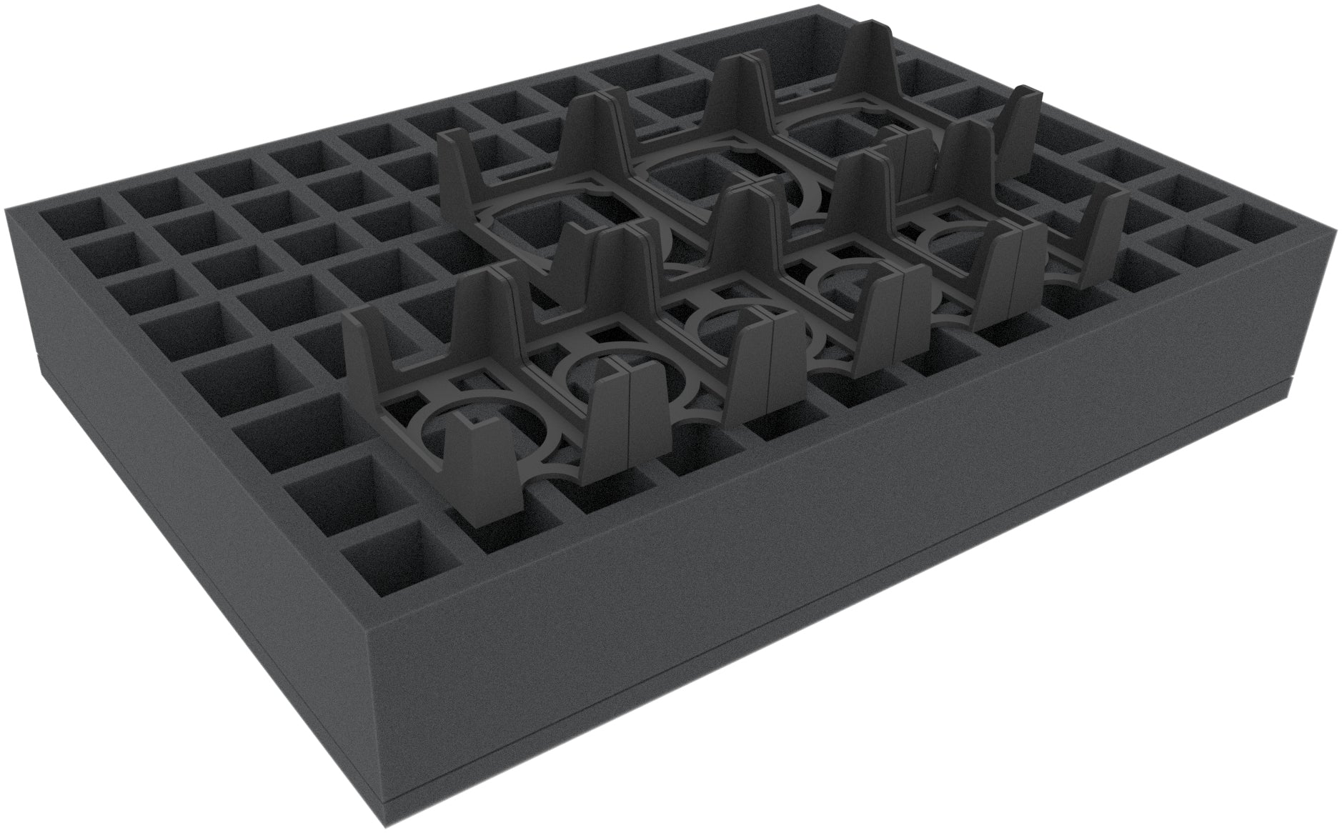 Whether character miniatures, giant mech, Prawns, or mercenaries, each figure gets its own compartment. Thanks to the custom-fit cut, the miniatures remain in place during transport. The soft foam reliably protects against damage like bent limbs or broken weapons. When you paint your figures, you can also be sure that the soft foam will spare the colors from scratches and abrasion.
