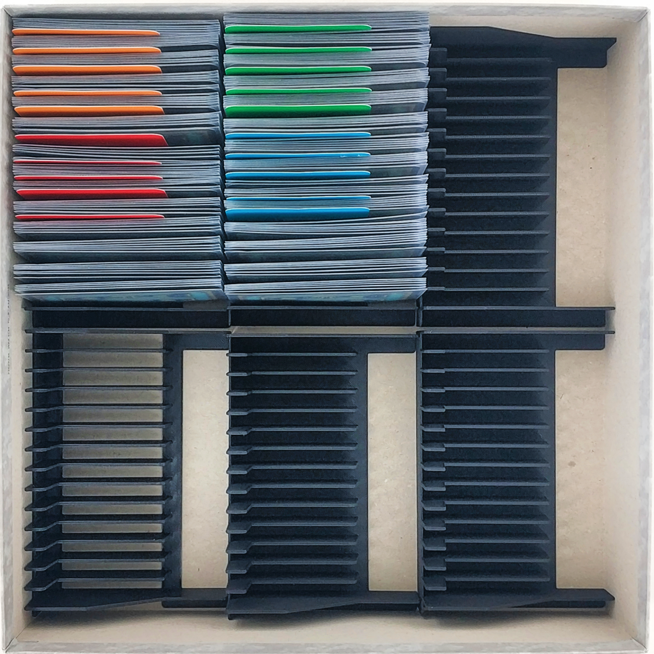 • Replaces the originally supplied plastic insert and allows you to store significantly more cards per box.