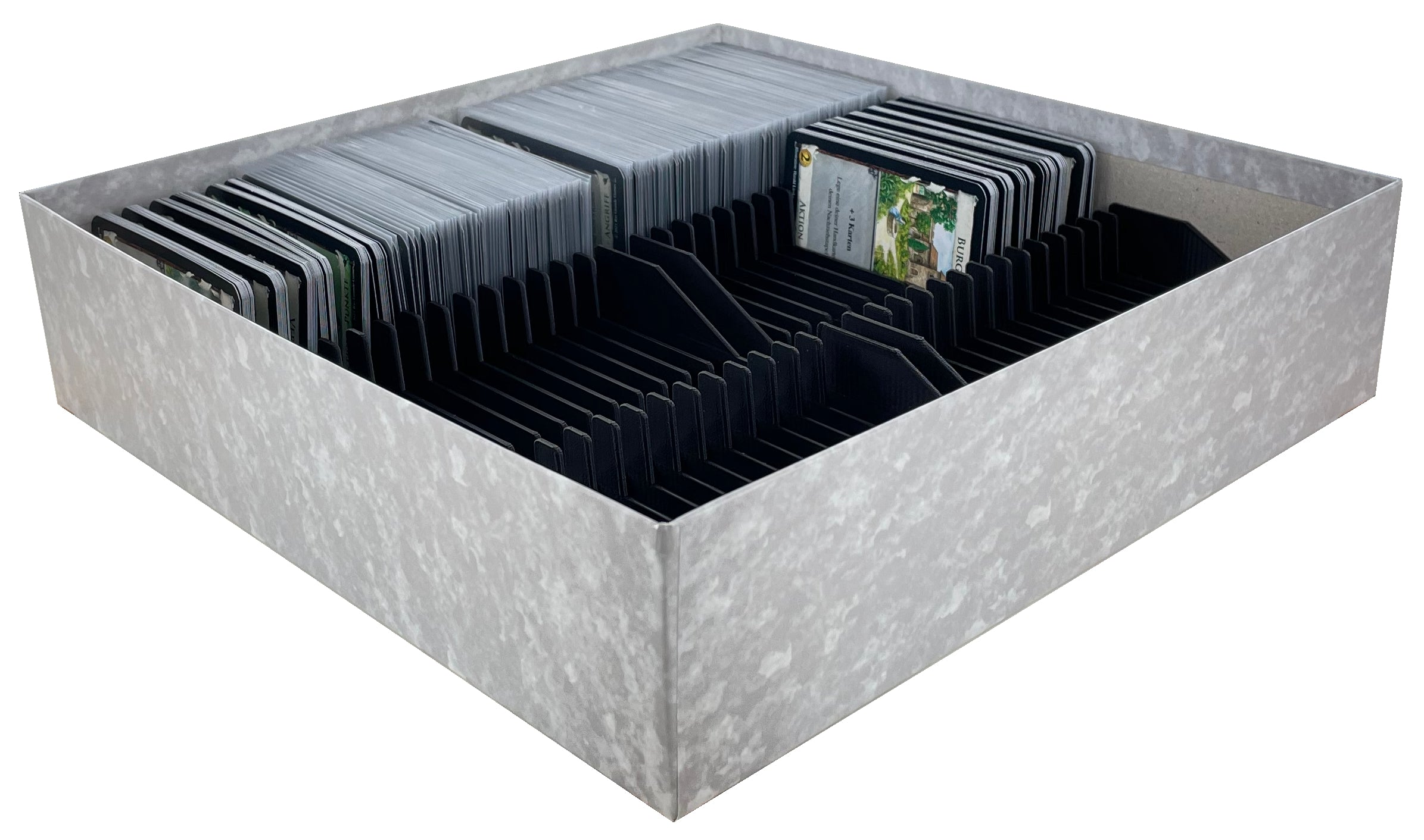 Not enough room for your Dominion playing cards in the board game box? Then replace the supplied plastic insert with this plastic Feldherr Organizer. Thanks to the card holders, up to 1680 cards will fit neatly sorted in your Dominion board game box.