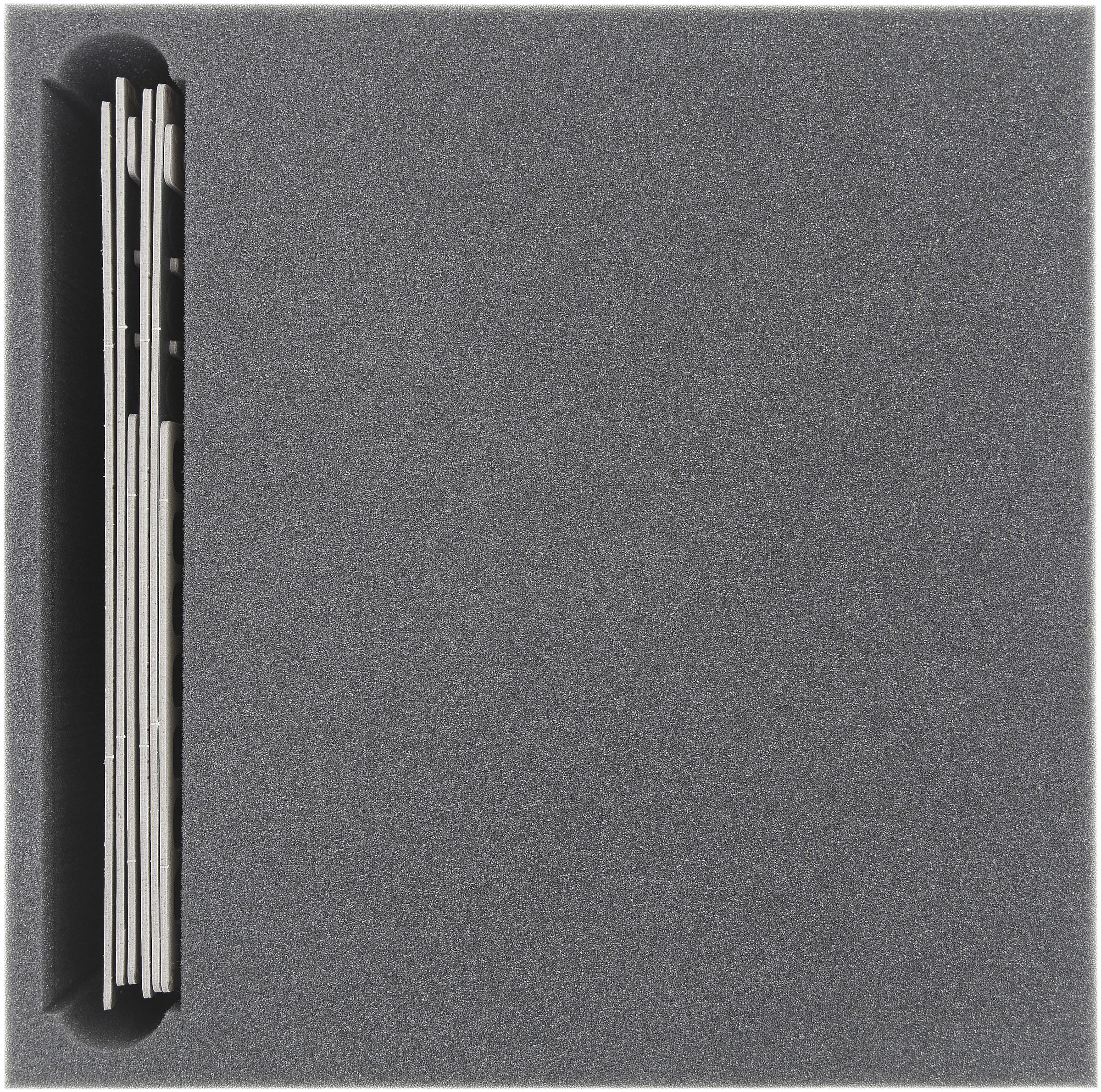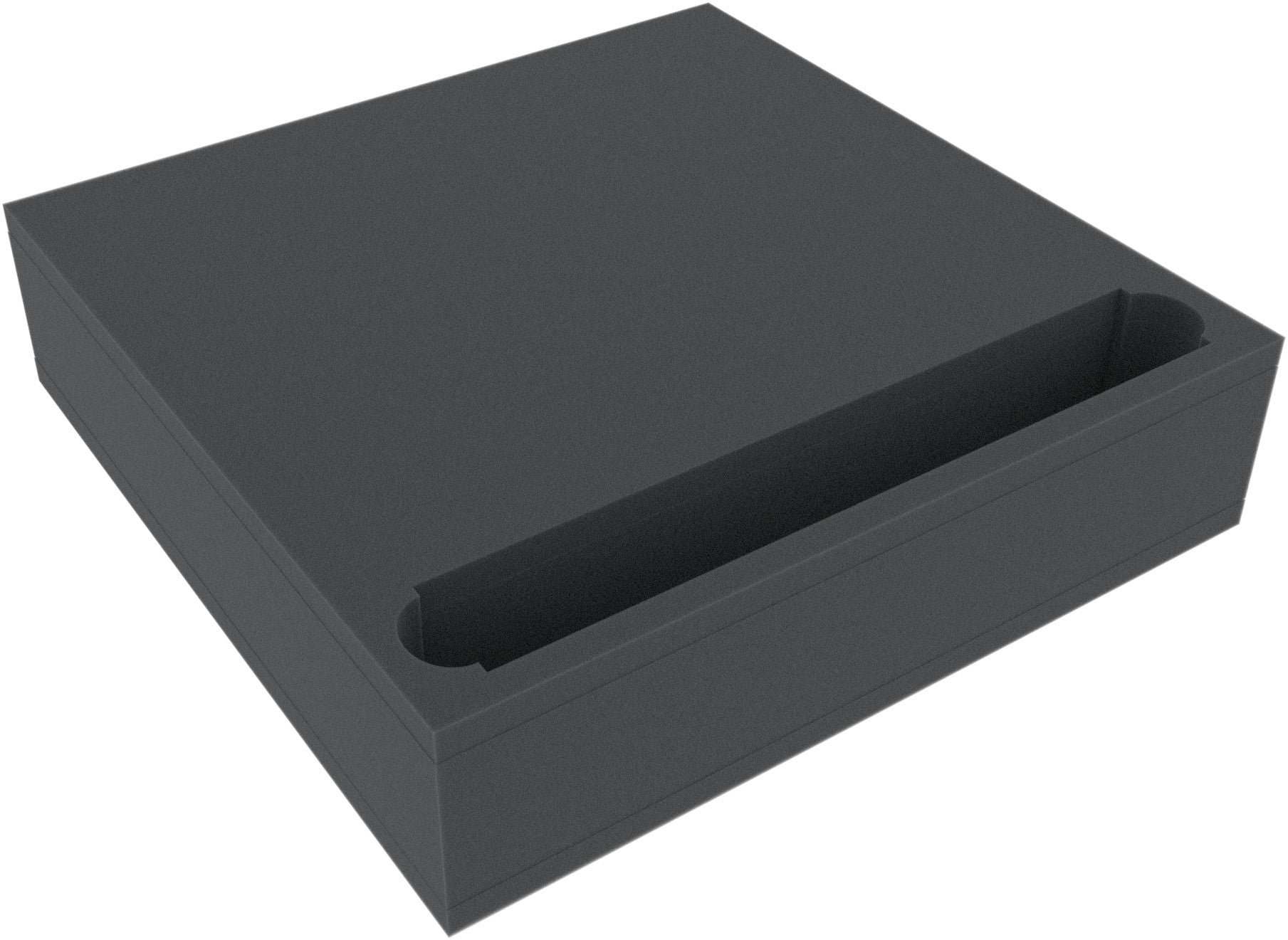 The Feldherr foam tray has the dimensions: 285 mm x 285 mm x 60 mm height. The 60 mm depth of the foam is result from 10 mm foam base and slot foam tray with 50 mm effective depth
