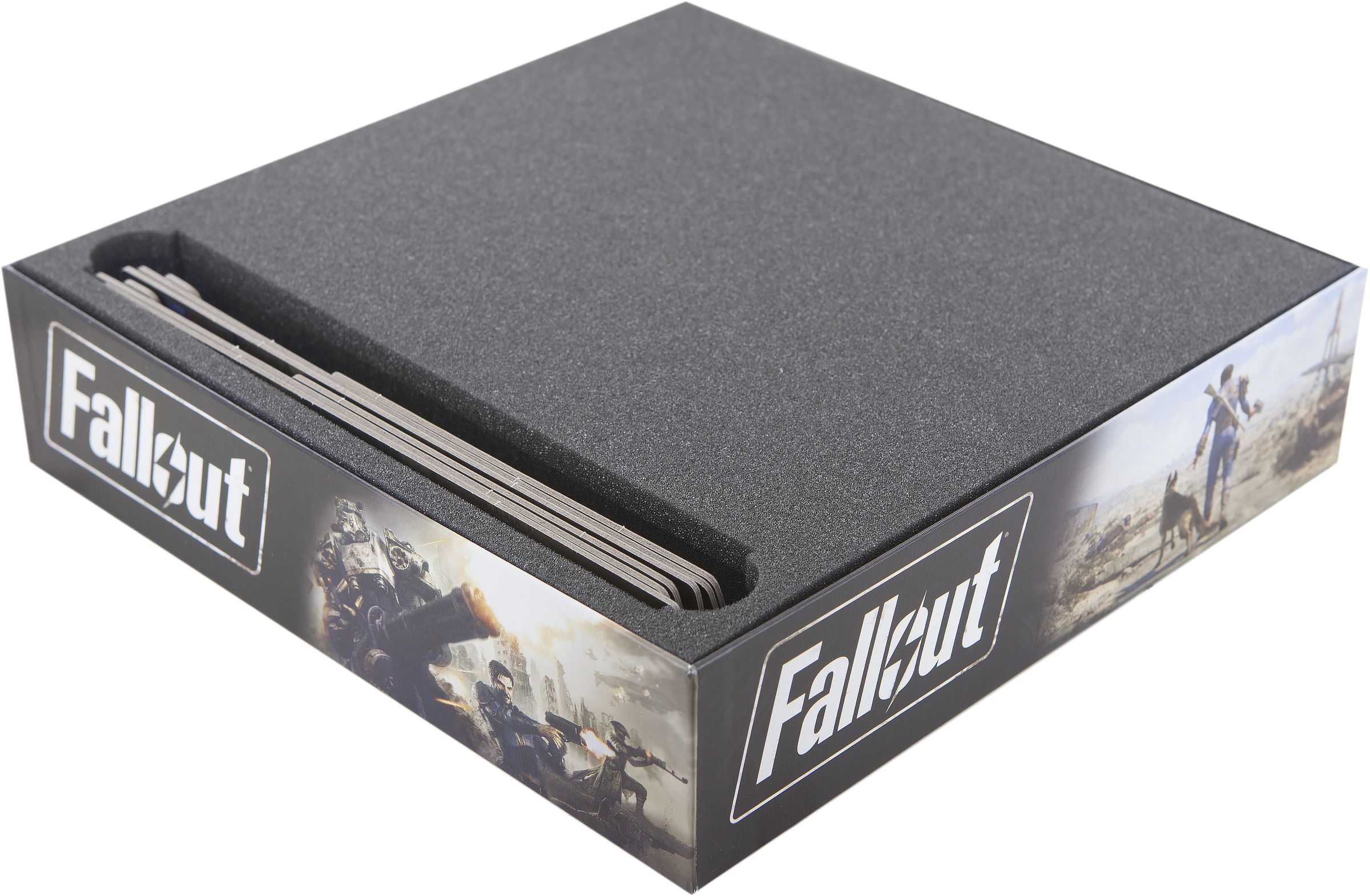 This foam tray is especially designed for Fallout. You can protect and transport your material of the original Fallout game box with this foam tray. In the 16 compartments you can stow your Fallout figures, the different cards in sleeves, tokens and dice in shaped cut outs. The mat fits in the original game box.