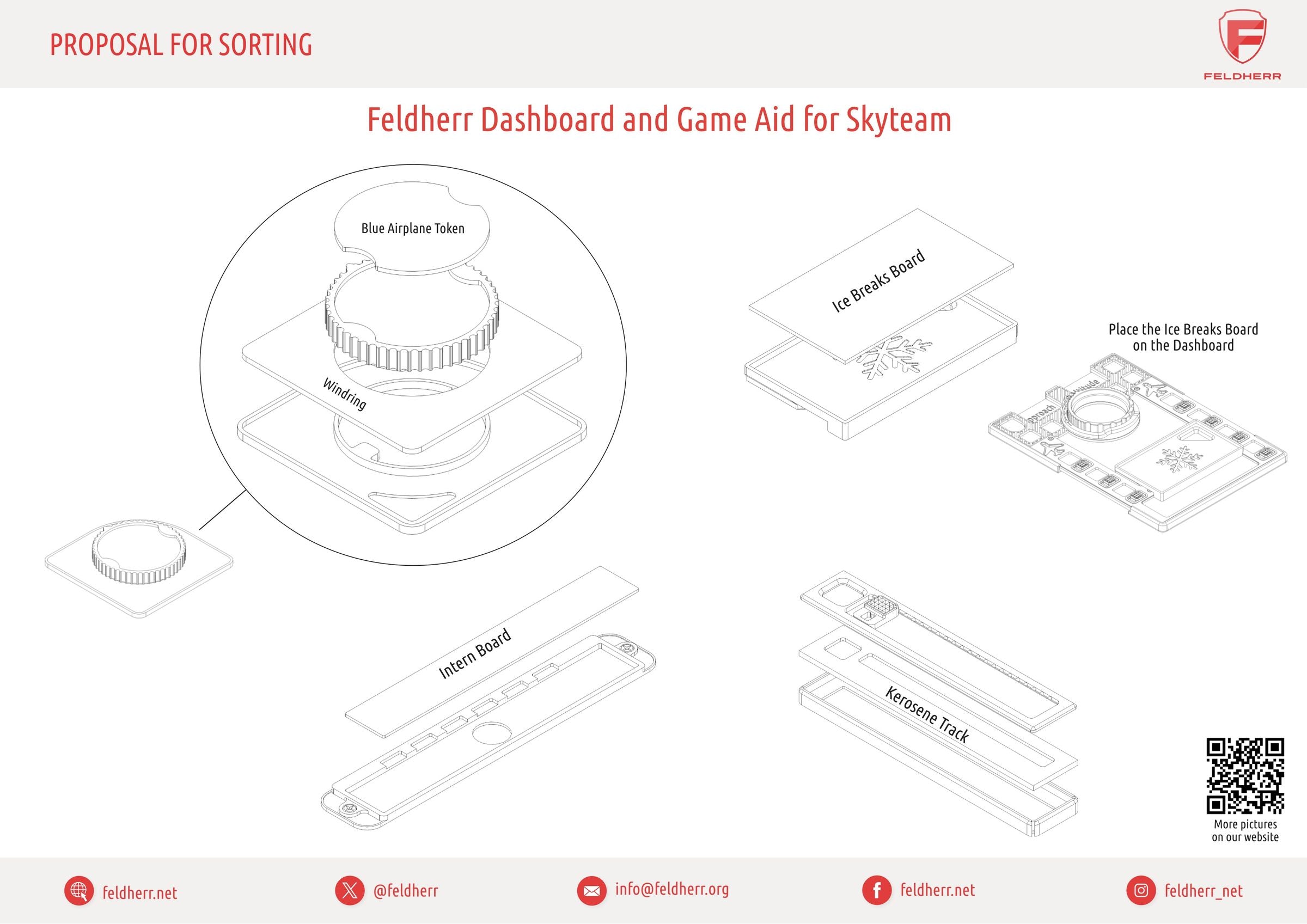- The dashboard and game aid set made of sturdy plastic replaces and supplements the central Sky Team elements made of cardboard, bringing them directly to the gaming table as stable 3D parts.