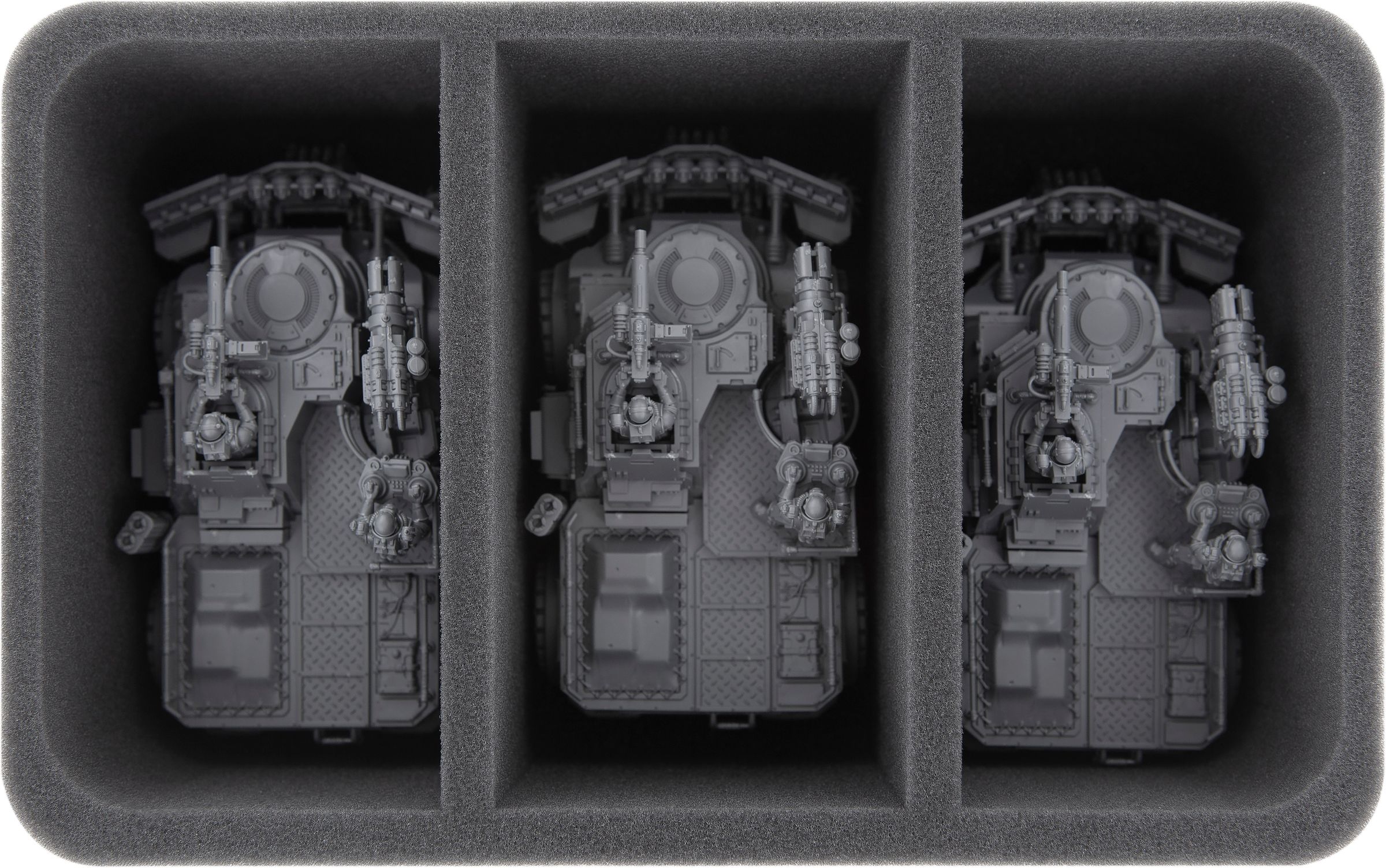 32 miniature in your collection gets its own custom-fit compartment here. For additional units, you are left with 15 free compartments. This ensures that your models remain safely in place during transport. The soft foam protects the sensitive parts of your figures and the colors of painted miniatures are just as safe from abrasion and scratches.
