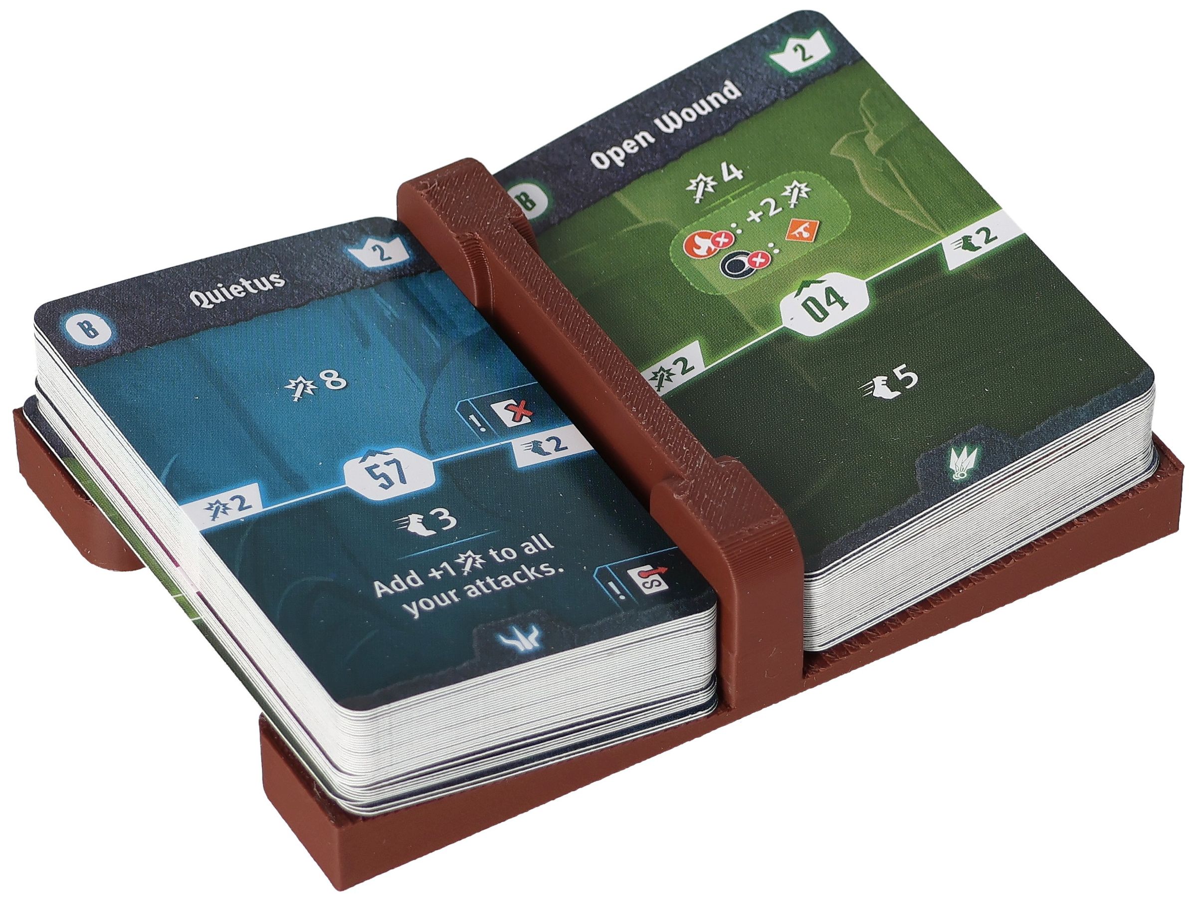 - Card holder with two compartments especially for small playing cards – can be placed directly on the gaming table for quick access and stable card stacks