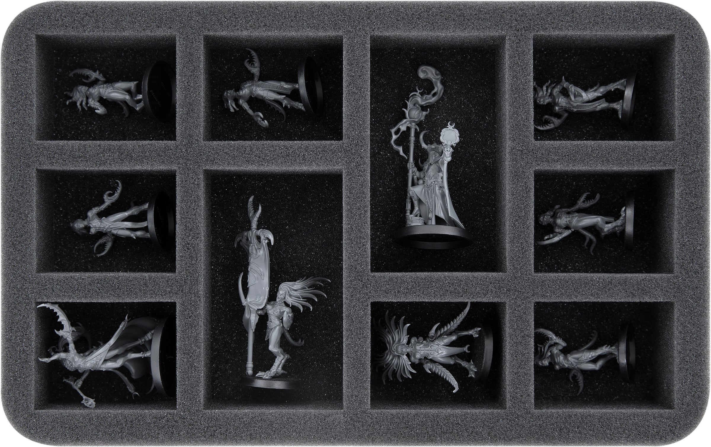 - 1 Half-Size foam tray with 10 compartments for Blue Horrors des Tzeentch + Pink Horror icon bearer and miniatures with similar dimensions (HS050A138)