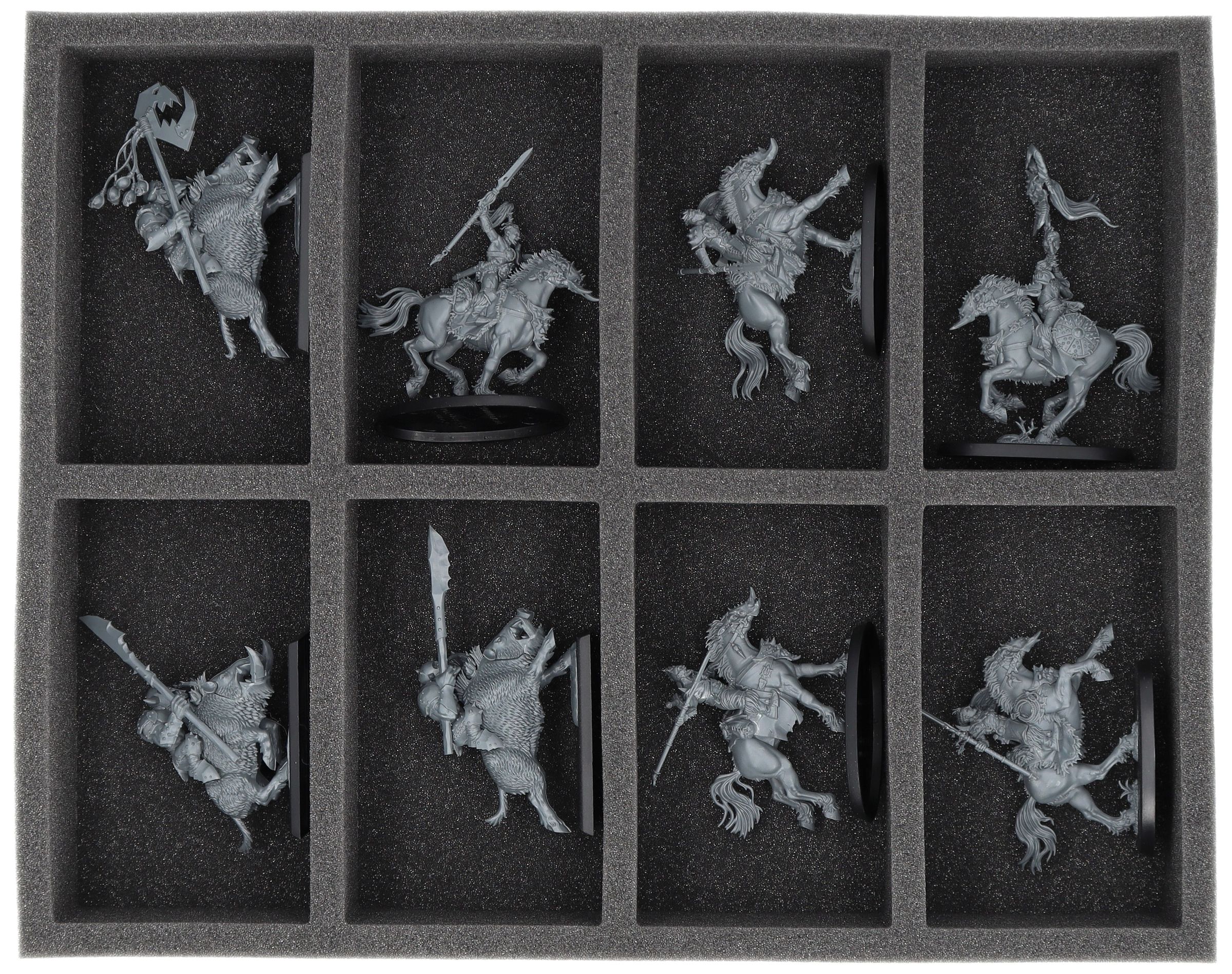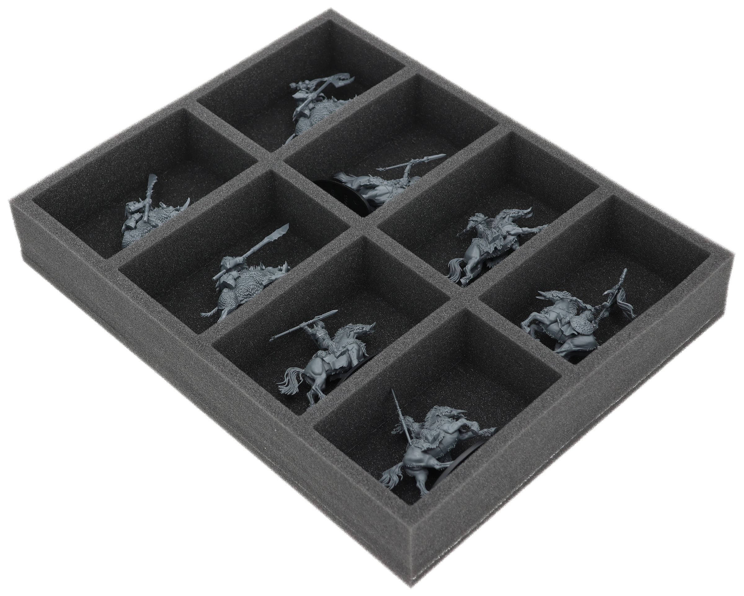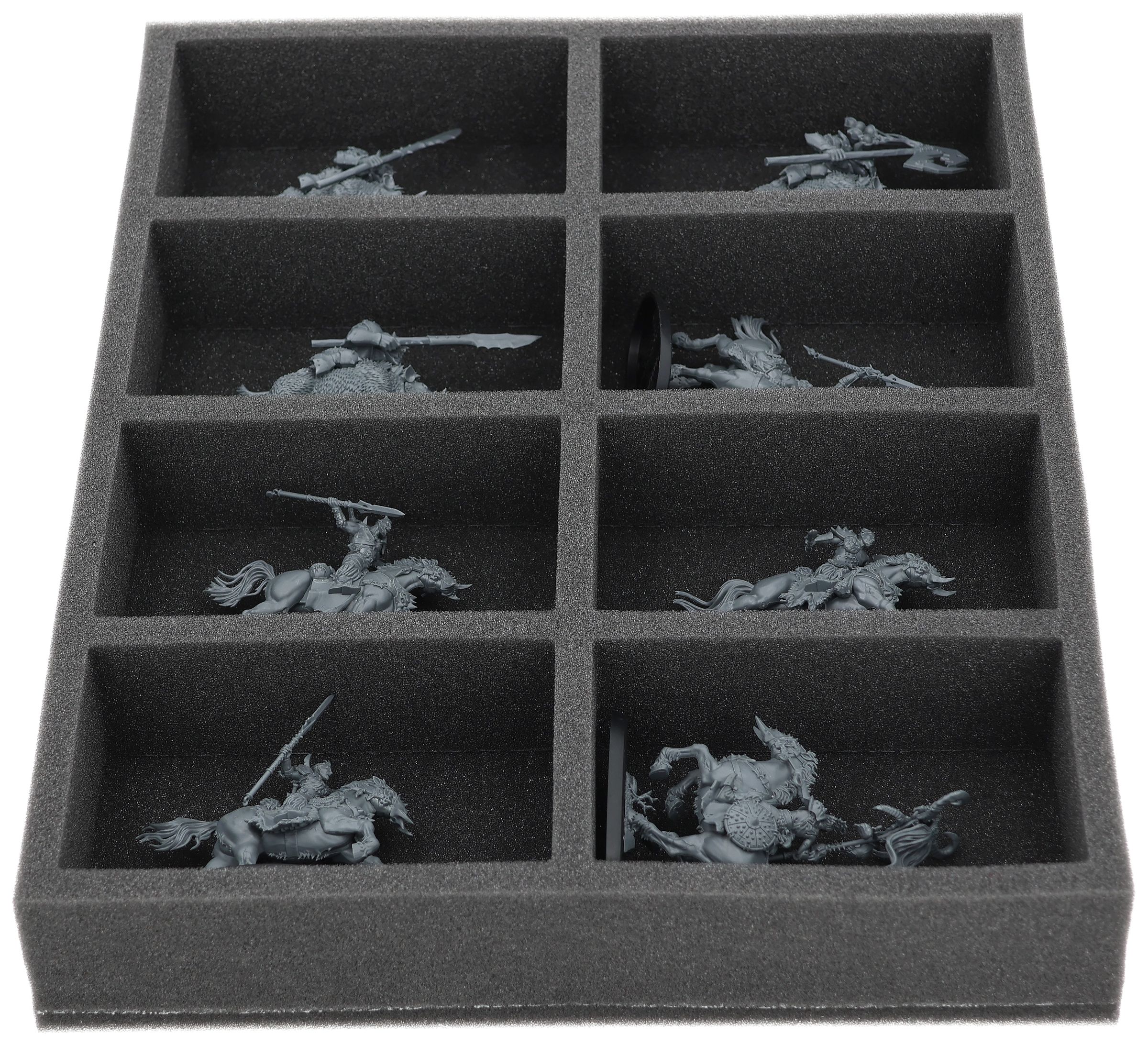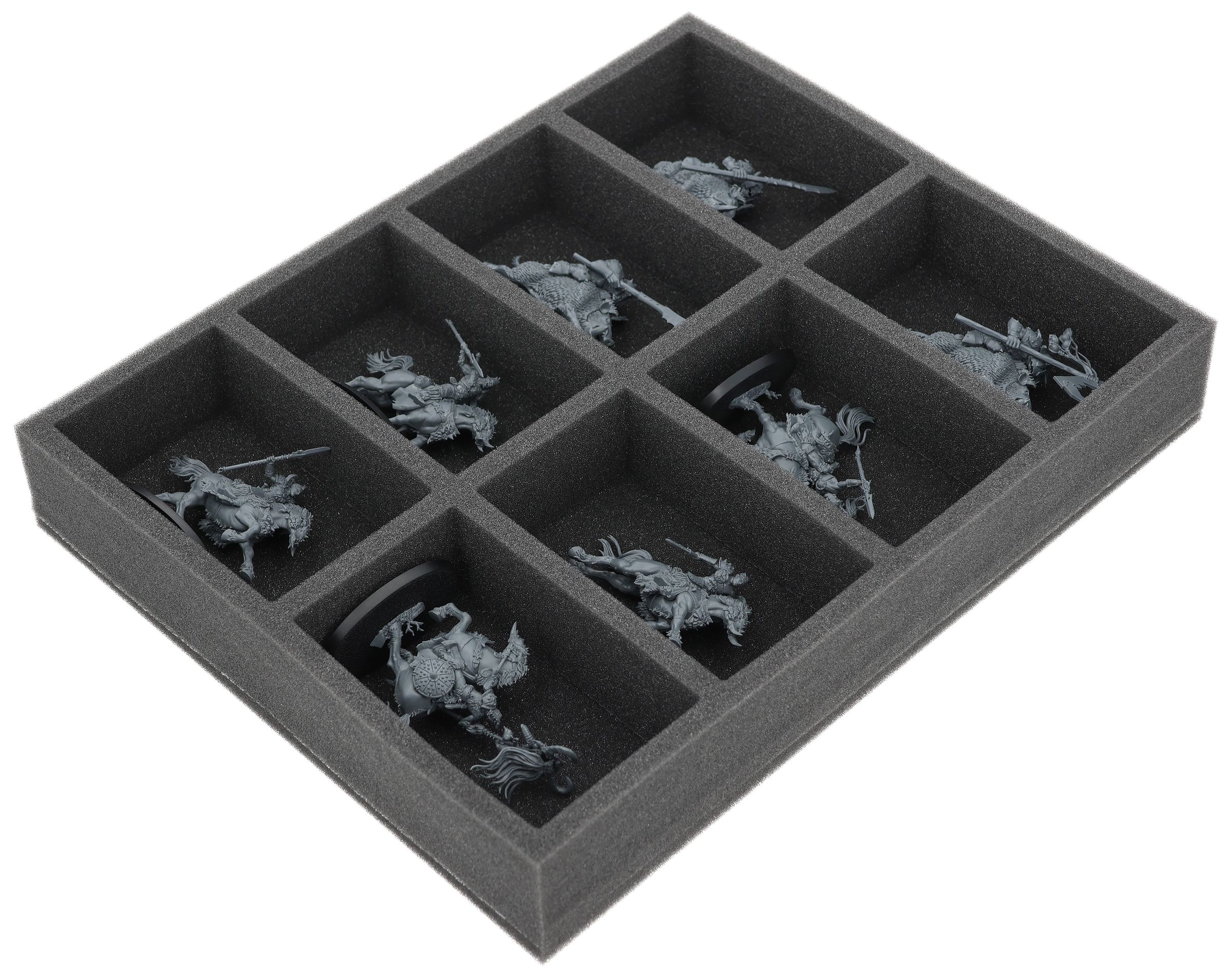On this Feldherr foam tray you have space for up to 8 miniatures of your army. The insert is especially suitable for storing the Darkoath Fellriders and similar sized models.