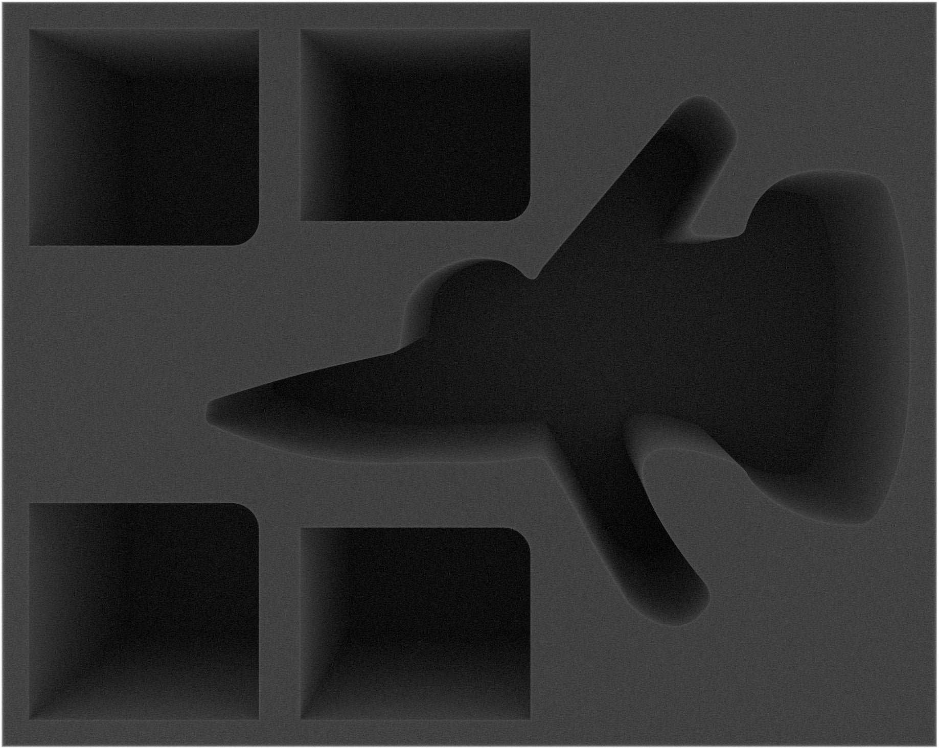 The Full-Size foam tray has the dimensions: 345 mm x 275 mm x 135 mm total height (125 mm usable height + 10 mm foam base).