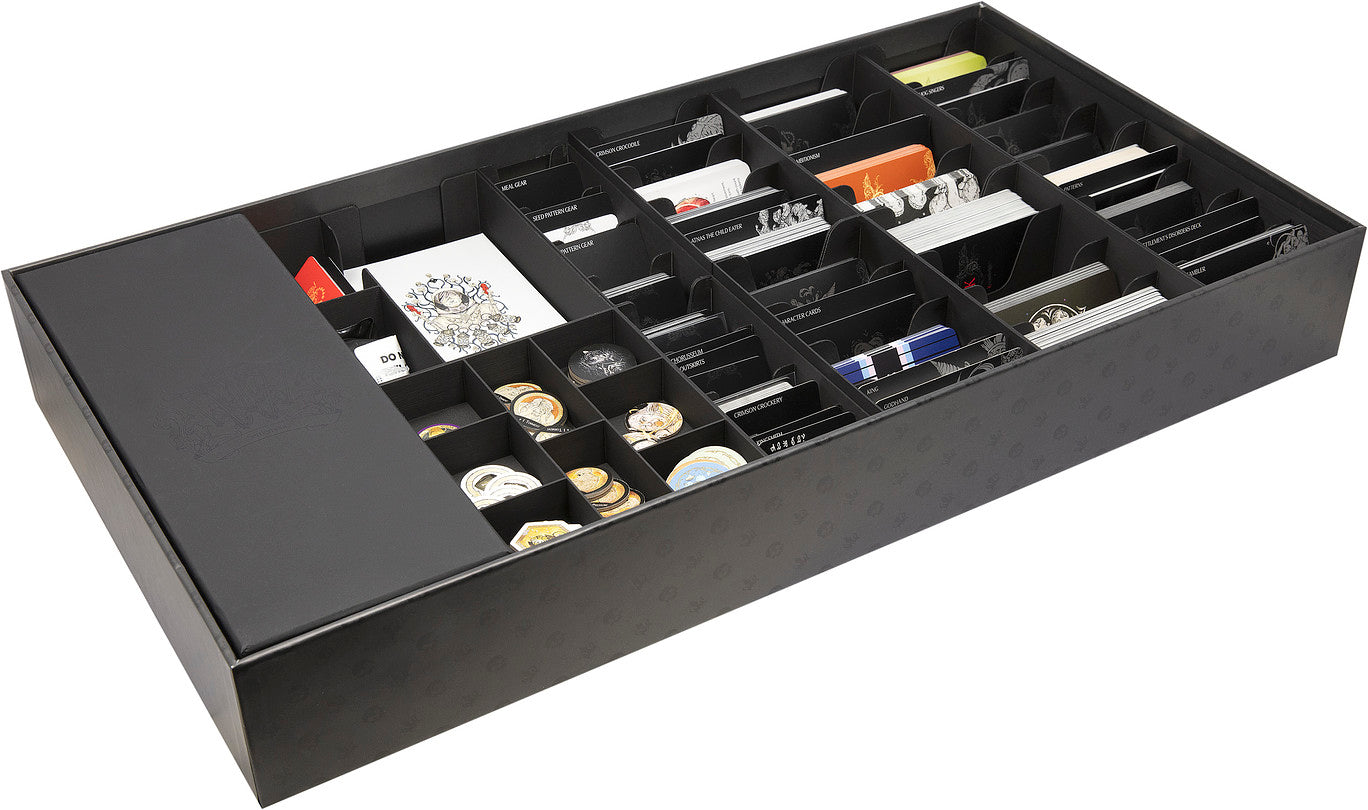 The matching Organizer inserts for the original board game box allow effortless organization of cards and small-sized game accessories. Your figures find a secure place in the sturdy Storage Box FSLB310, filled with high-quality custom Feldherr foam trays. This ensures that your game materials are optimally organized and your miniatures are well protected.