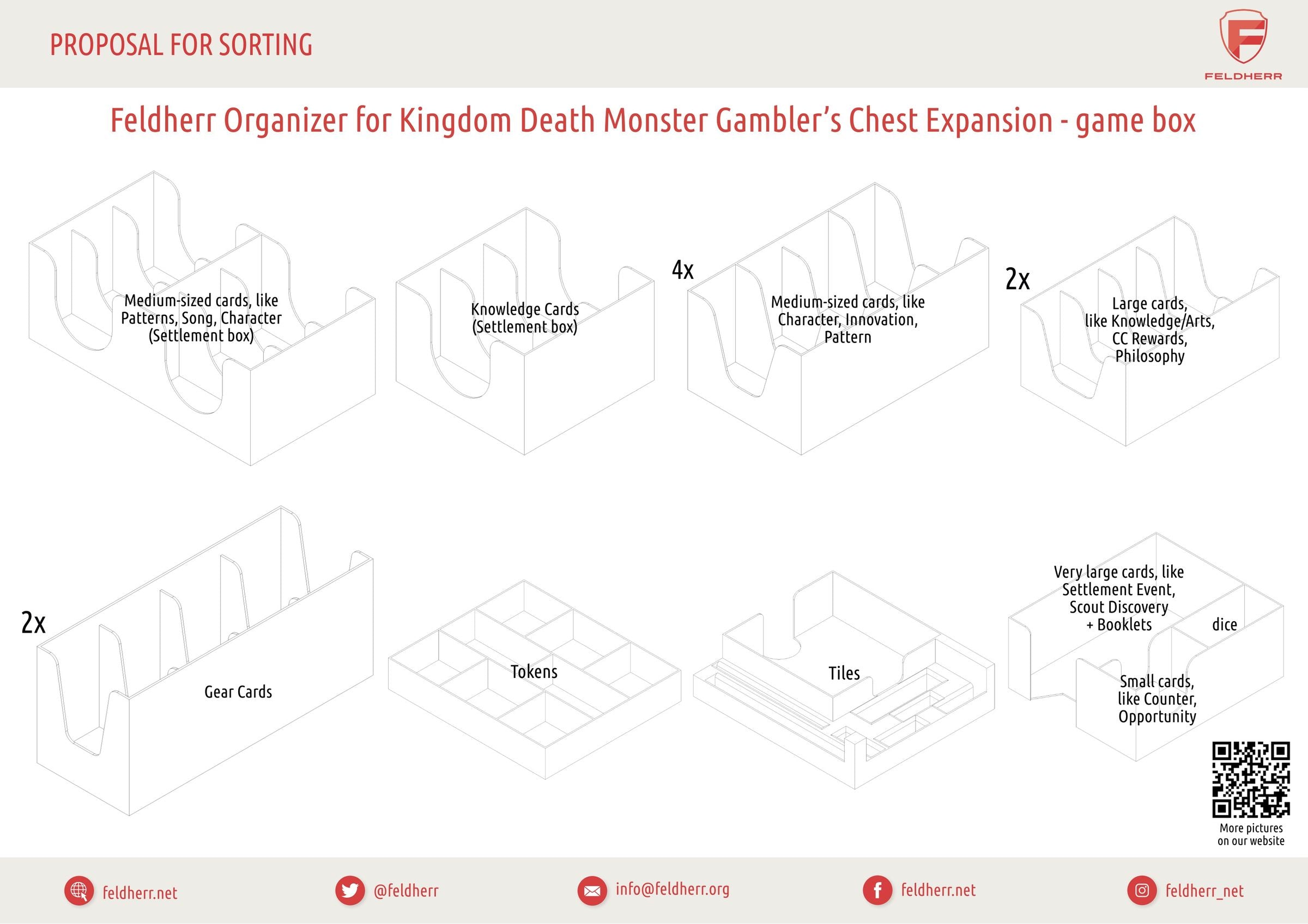 You’ve waited years for the Kingdom Death: Monster expansion, and it’s finally yours. To ensure your valuable playing time is not wasted searching for game materials, we proudly present the Feldherr Organizer designed for the board game box from the Gambler’s Chest Expansion.