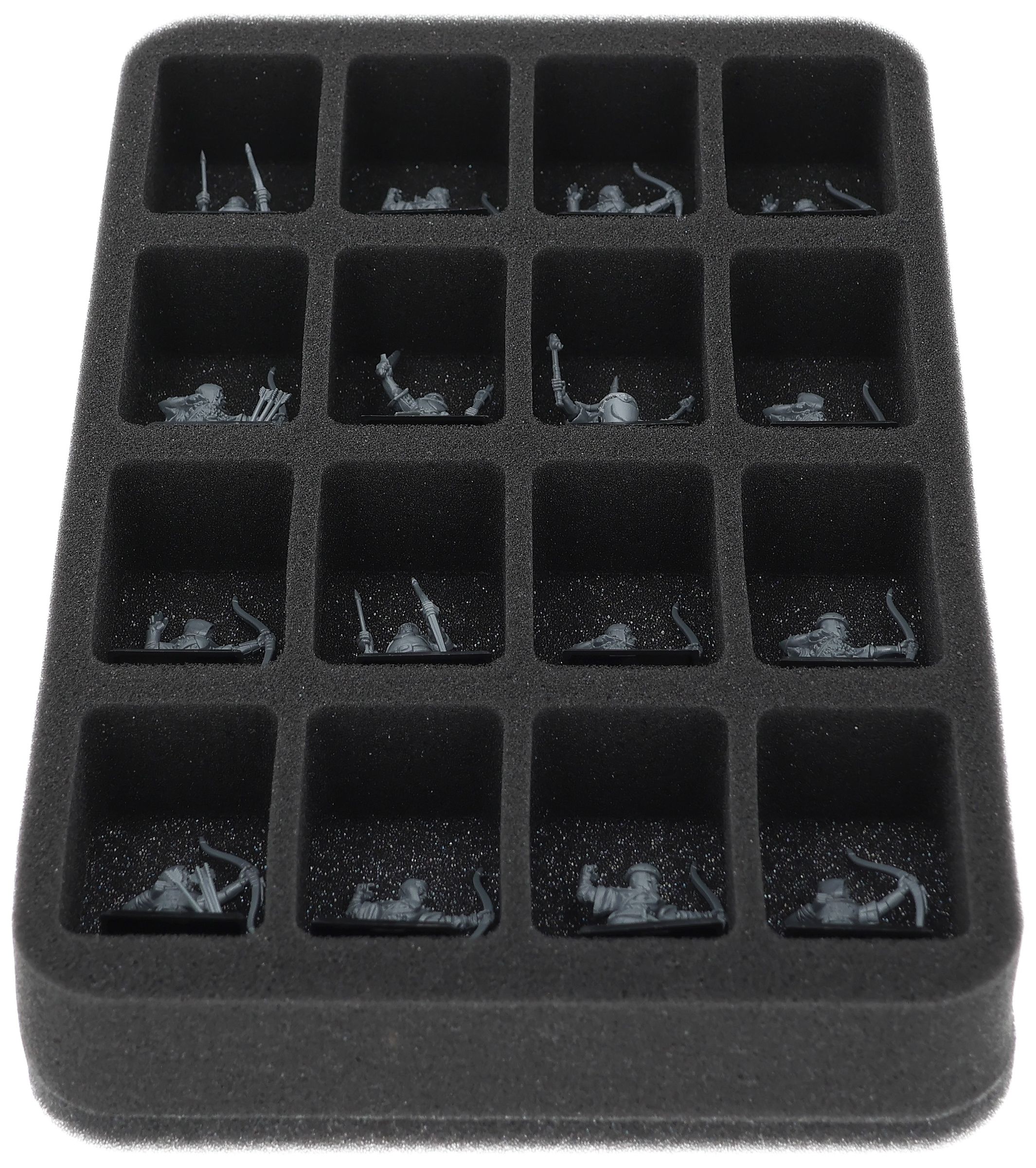 On this Feldherr foam tray you have space for up to 16 miniatures of your army. The insert is especially suitable for storing the Peasant Bowmen and similar sized models.