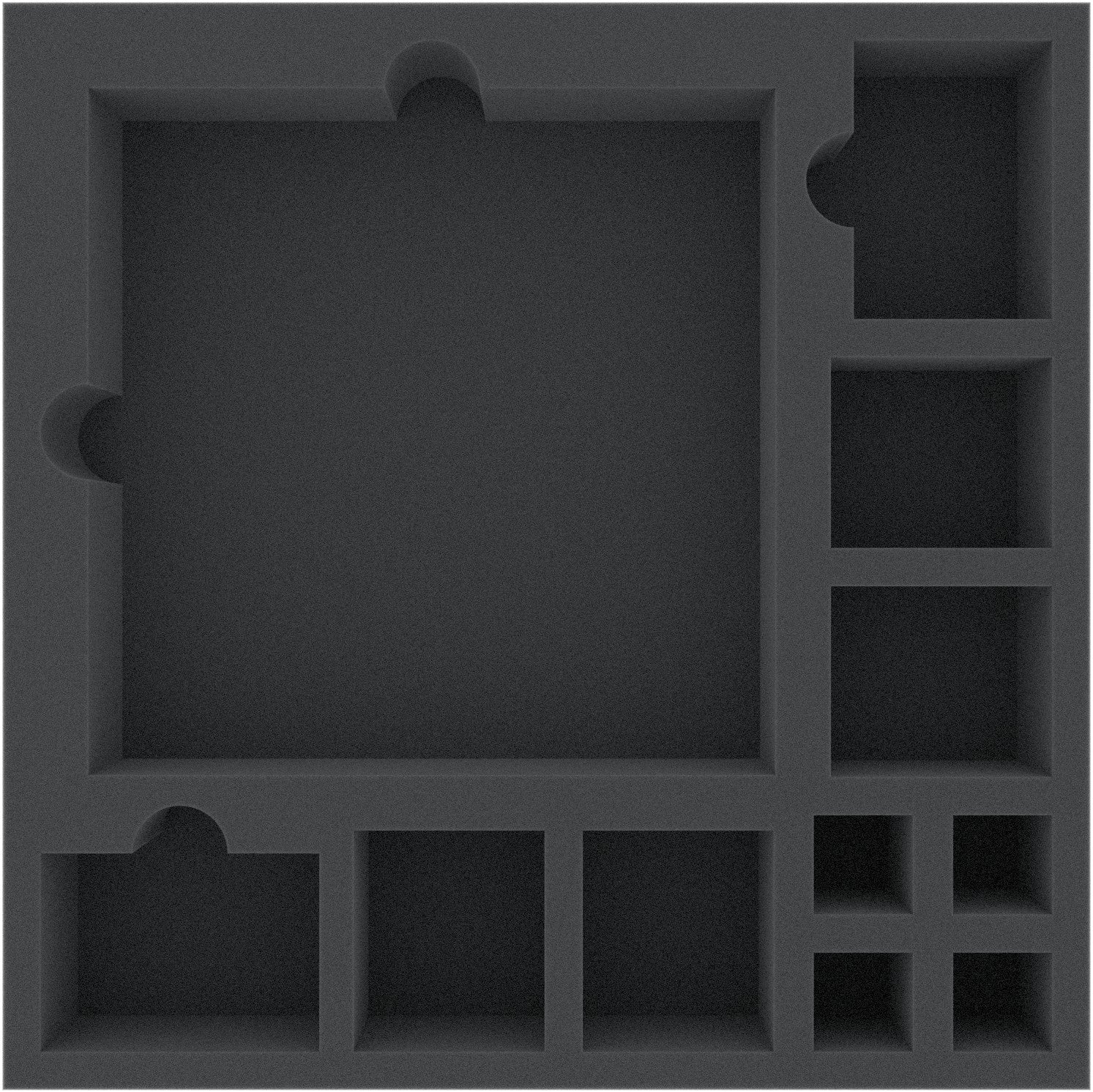 The set enables you to sensibly sort all miniatures, tiles, tokens and (sleeved) cards so that you are ready to start playing at any time. Of course, the fine-pored foam provides reliable protection for your game material – fragile miniature details stay intact, sensitive surfaces remain free from scratches and abrasion.