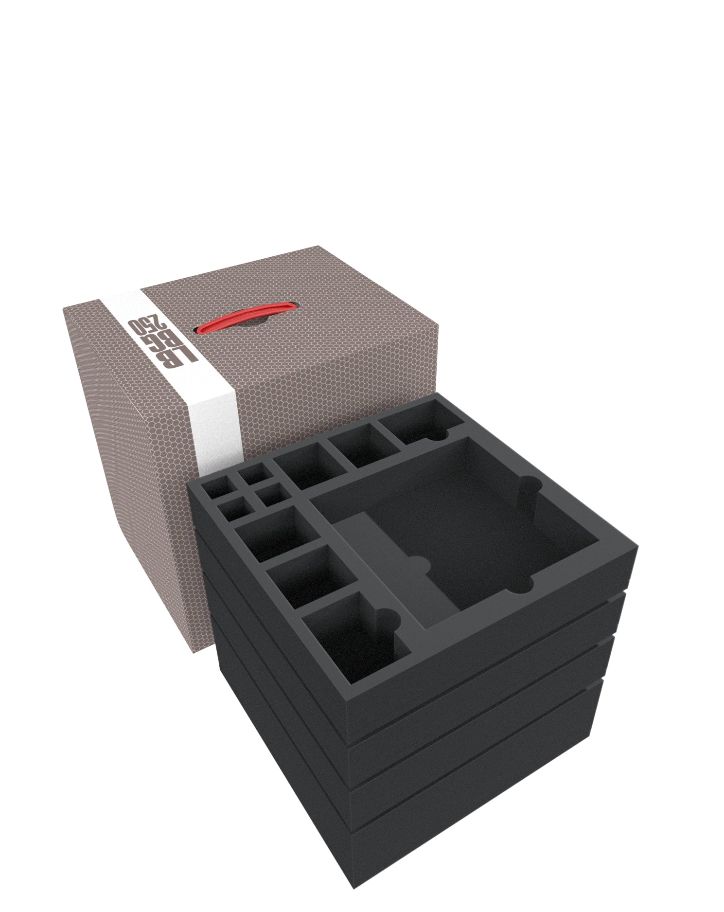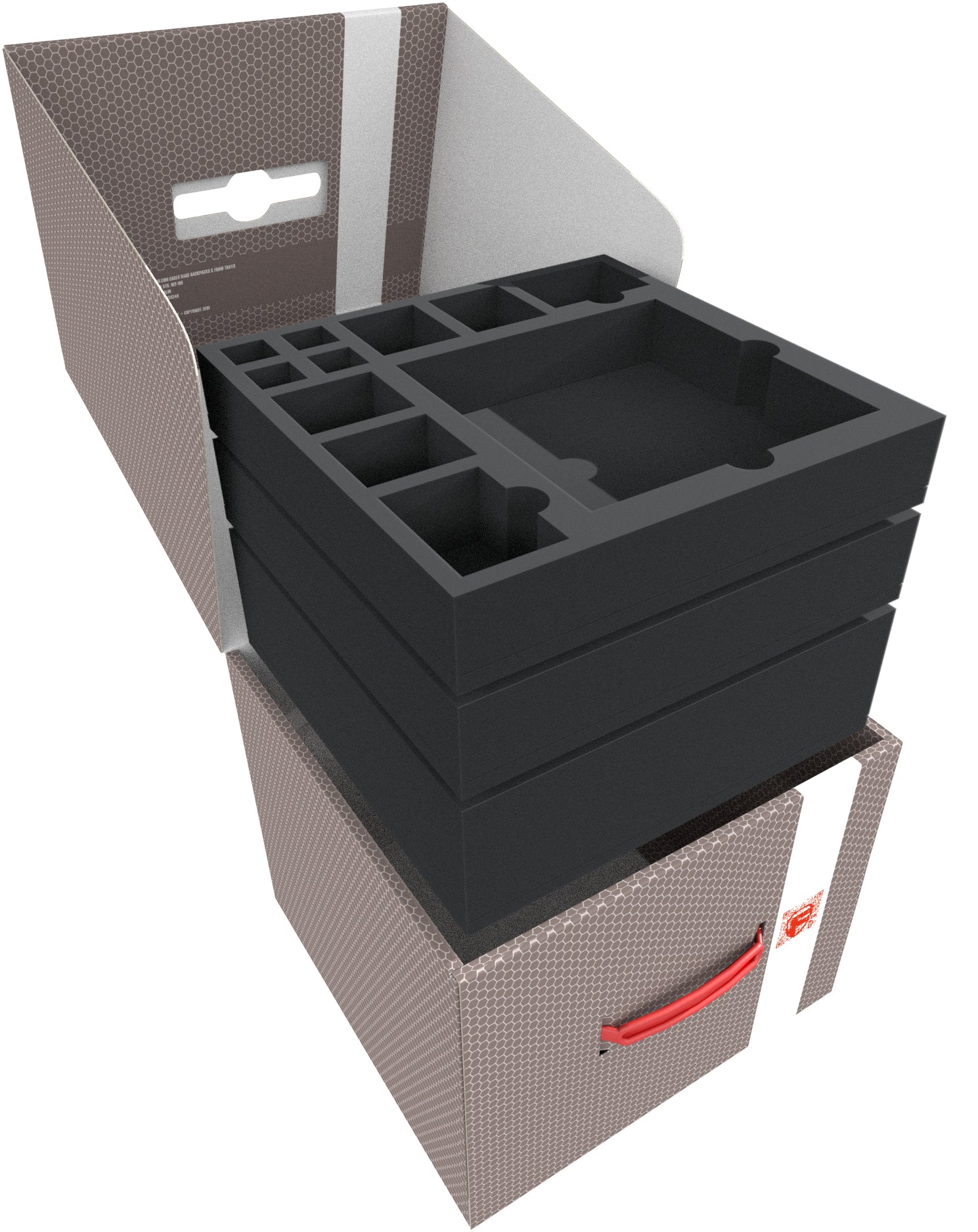 - 2 foam trays with 14 compartments each for miniatures, tiles, (sleeved) cards and tokens (AFJB050BO)