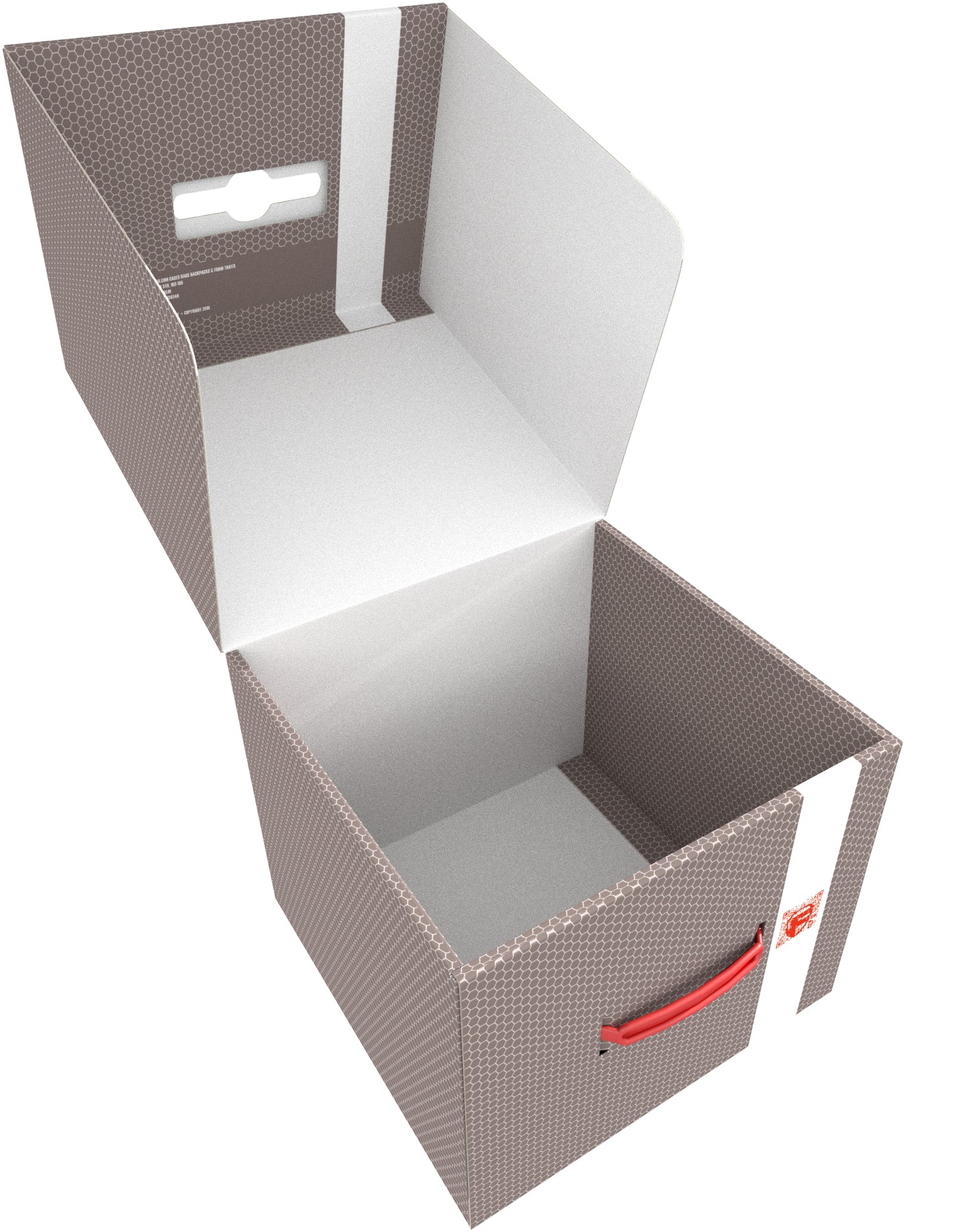 The foam topper is placed on the upper tray to ensure that nothing falls out during transport.