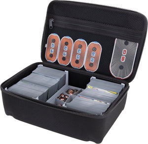• Careful storage of sleeved cards thanks to close-fitting compartments and sturdy card dividers.
