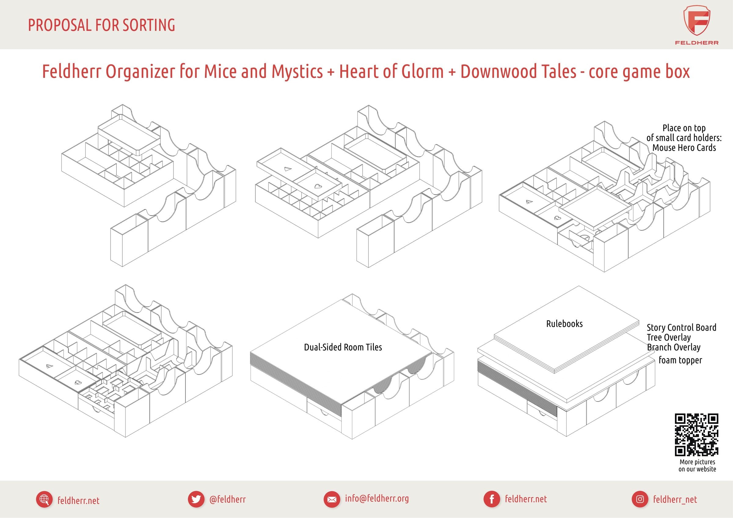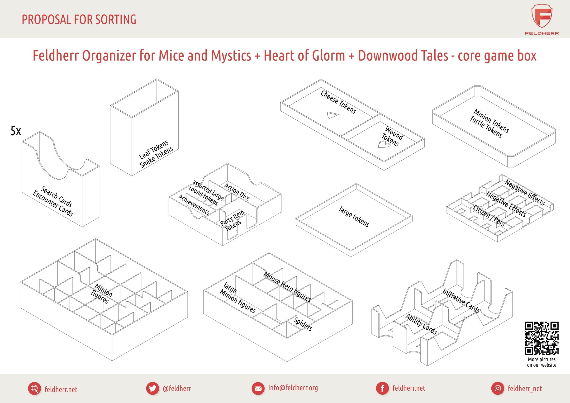 - It offers space for all miniatures, cards and the entire game material of the "Mice and Mystics" core game and the two expansions "Heart of Glorm" and "Downwood Tales".