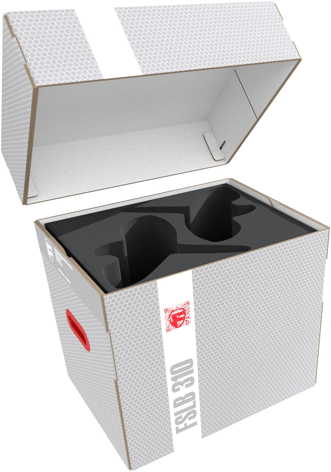 The Storage Box FSLB310 is made of coated, double-walled cardboard and is therefore both very light and very stable. The attachable lid reliably protects the contents from dust and other external influences. With the two plastic-reinforced carrying handles on the sides, you can transport the box very comfortably.