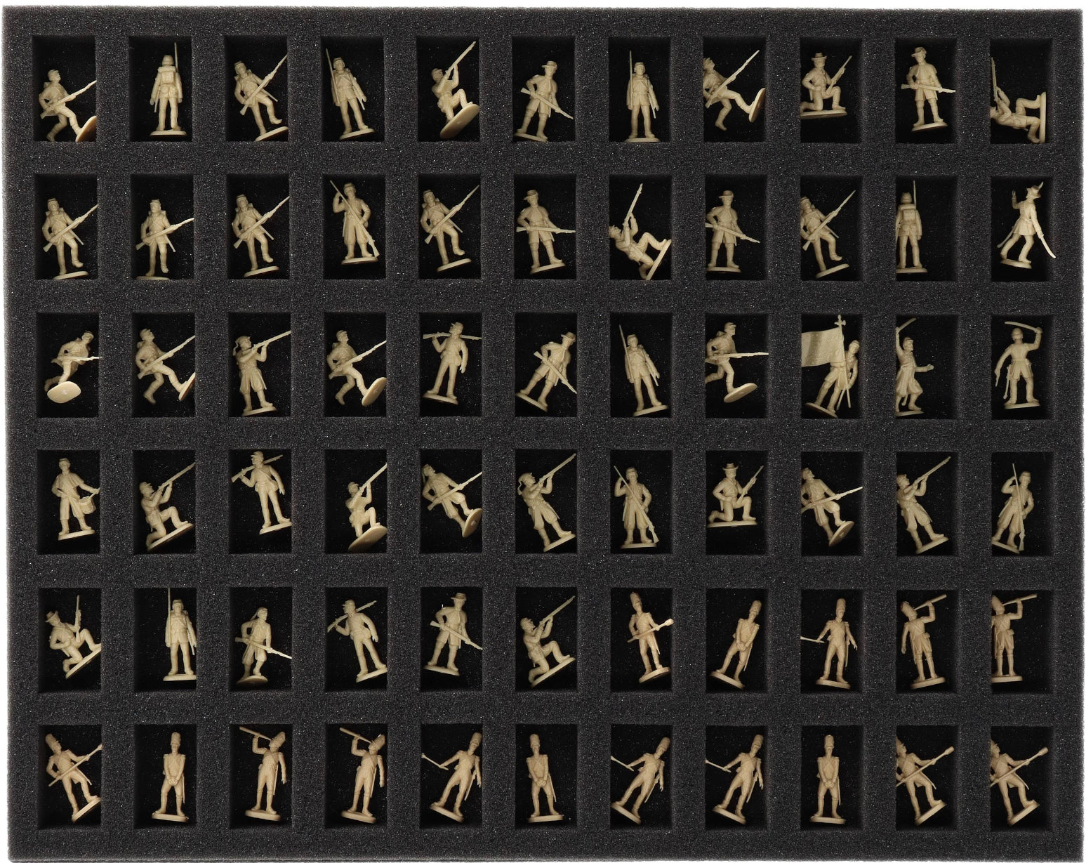 - 1 Full-Size foam tray with 66 compartments for 20 mm tabletop figures such as Union Infantrymen and Zouaves from the American Civil War, as well as models with similar dimensions (FS030A004)