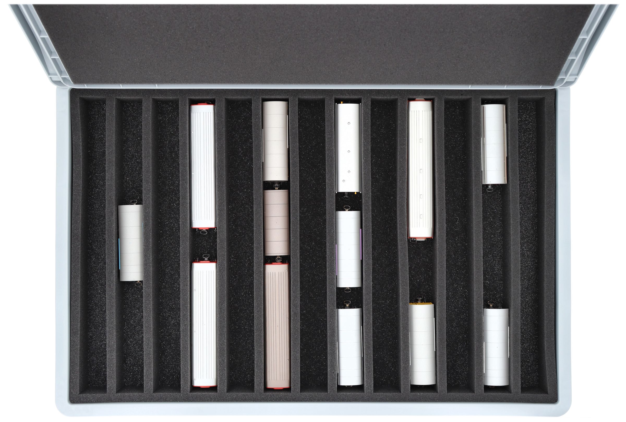 The 13 equal-sized compartments (each approx. 350 x 33 x 45 mm) are specially designed for H0m scale models. The precise fit keeps your models securely in place during transport.