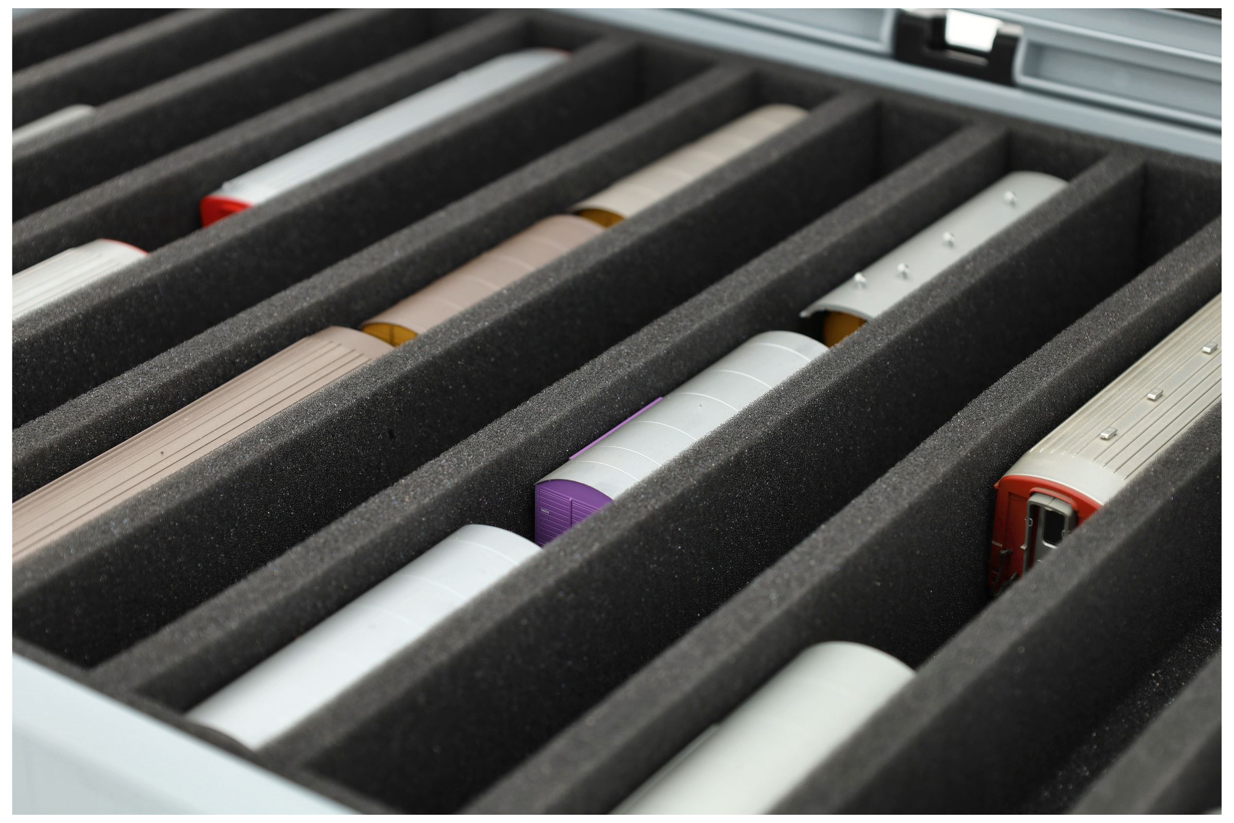 - 13 compartments - foam insert for upright storage of locomotives, wagons and vehicles