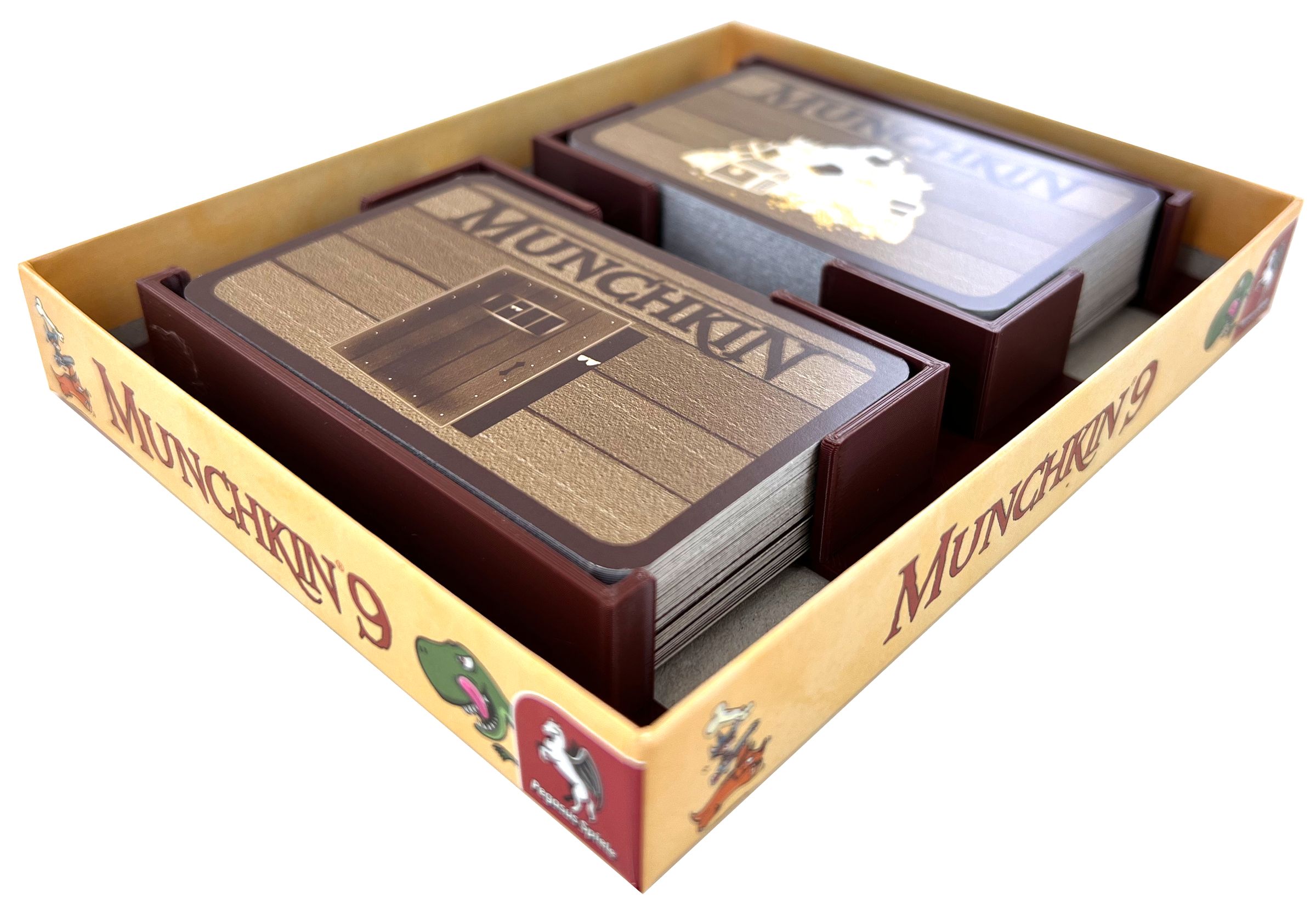 Do You like to store your Munchkin cards in the original card boxes? But the cards should be stable and neatly sorted. Then this Feldherr card holder is the answer to your needs. It perfectly fits the game boxes of many expansions and offers space to store more than 110 cards.
