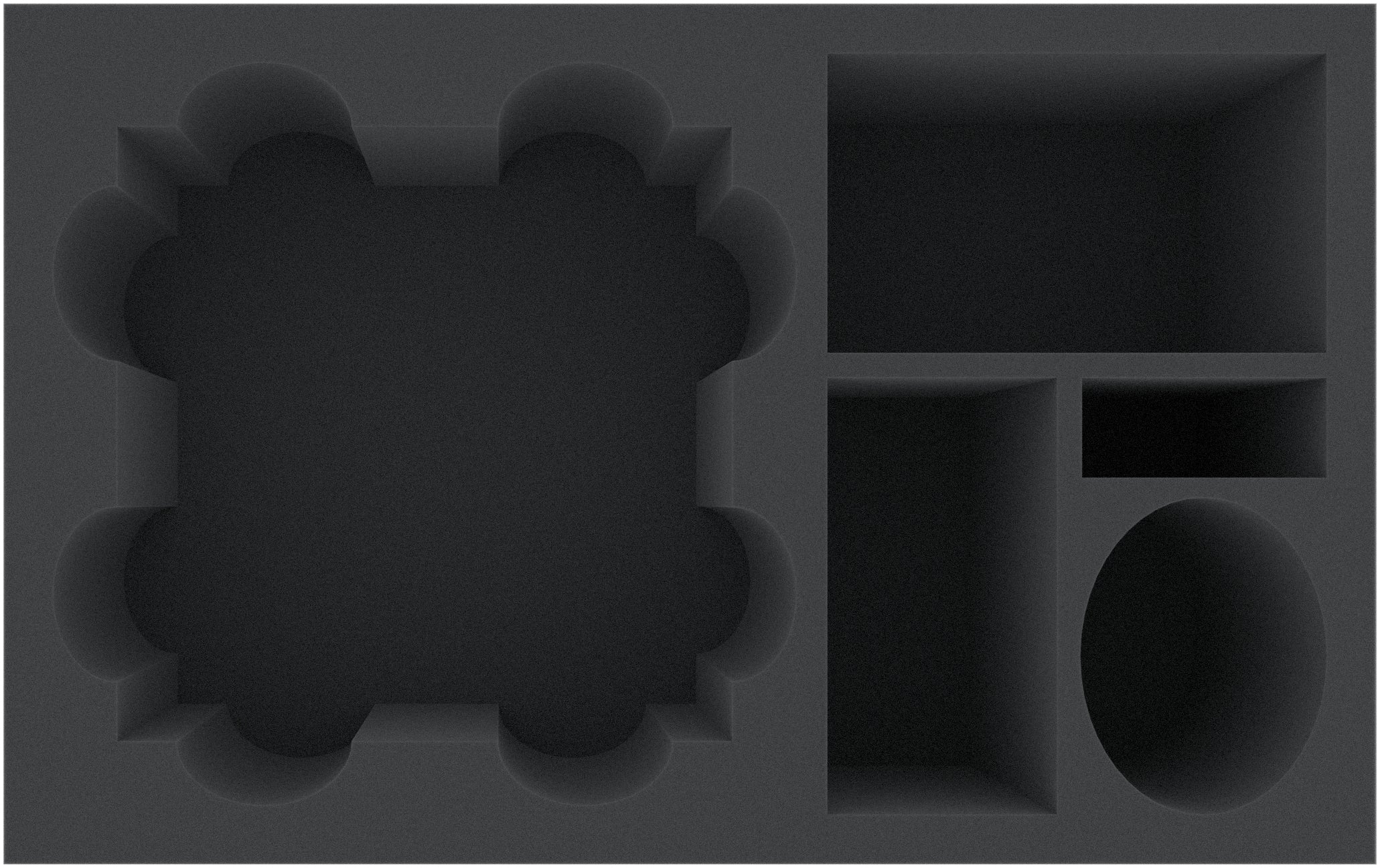 • 1 Double-Size foam tray with five compartments and PE rigid foam base for Tesseract Vault lower part + base + other miniatures like Triarch Stalker, Tomb Blades