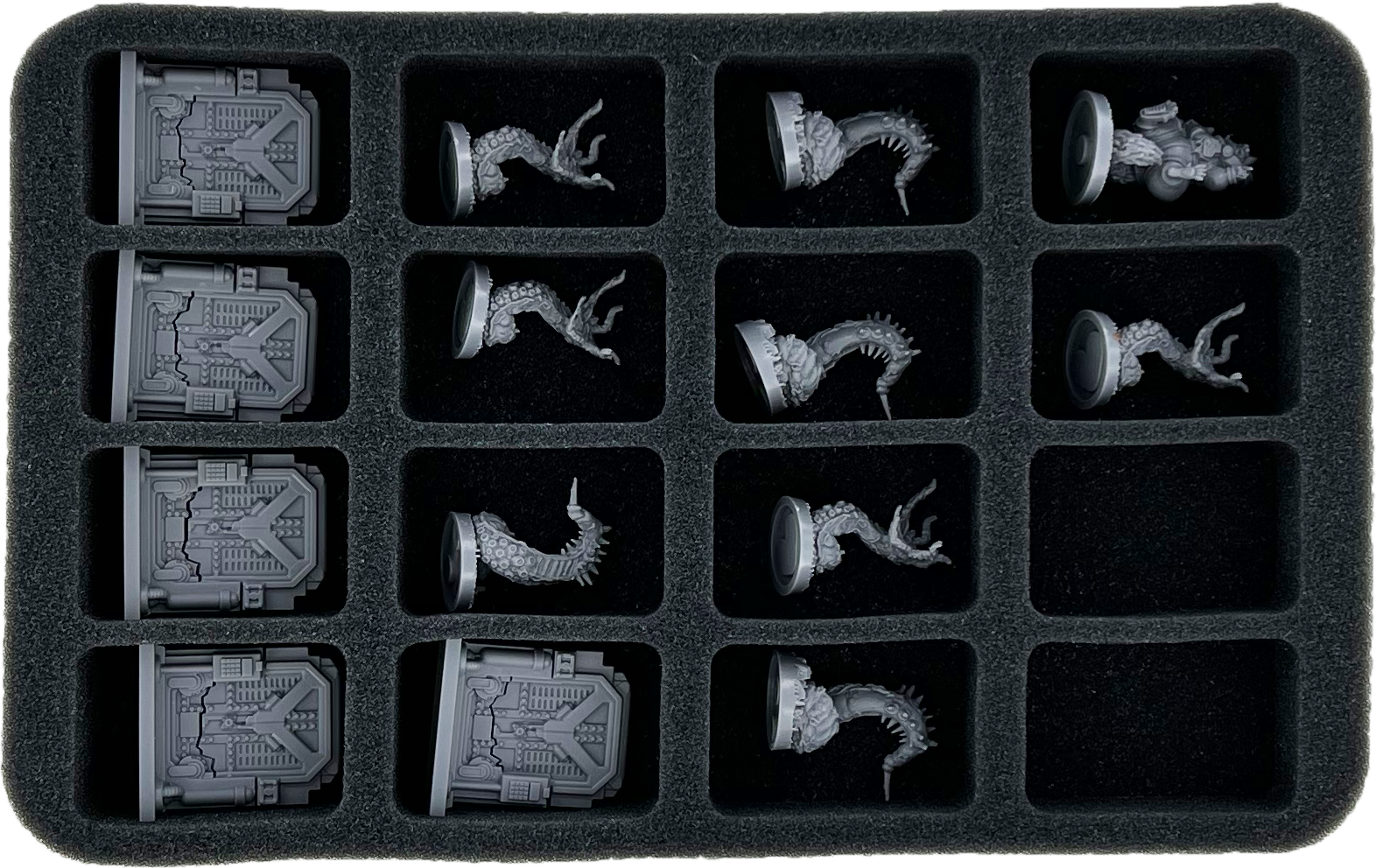 - 1 Half-Size foam tray with 16 compartments for miniatures like doors and small alien miniatures (HS035BF05BO)