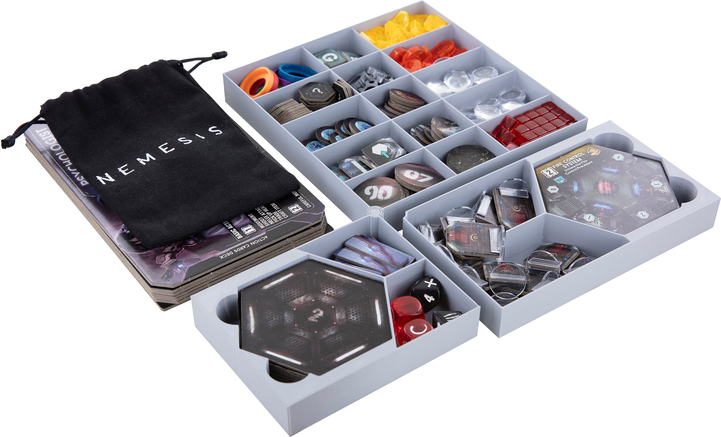 - The set is an addition to the Feldherr foam set AF32Set. It fits exactly into the original board game box of the "Nemesis" core game by Awaken Realms.