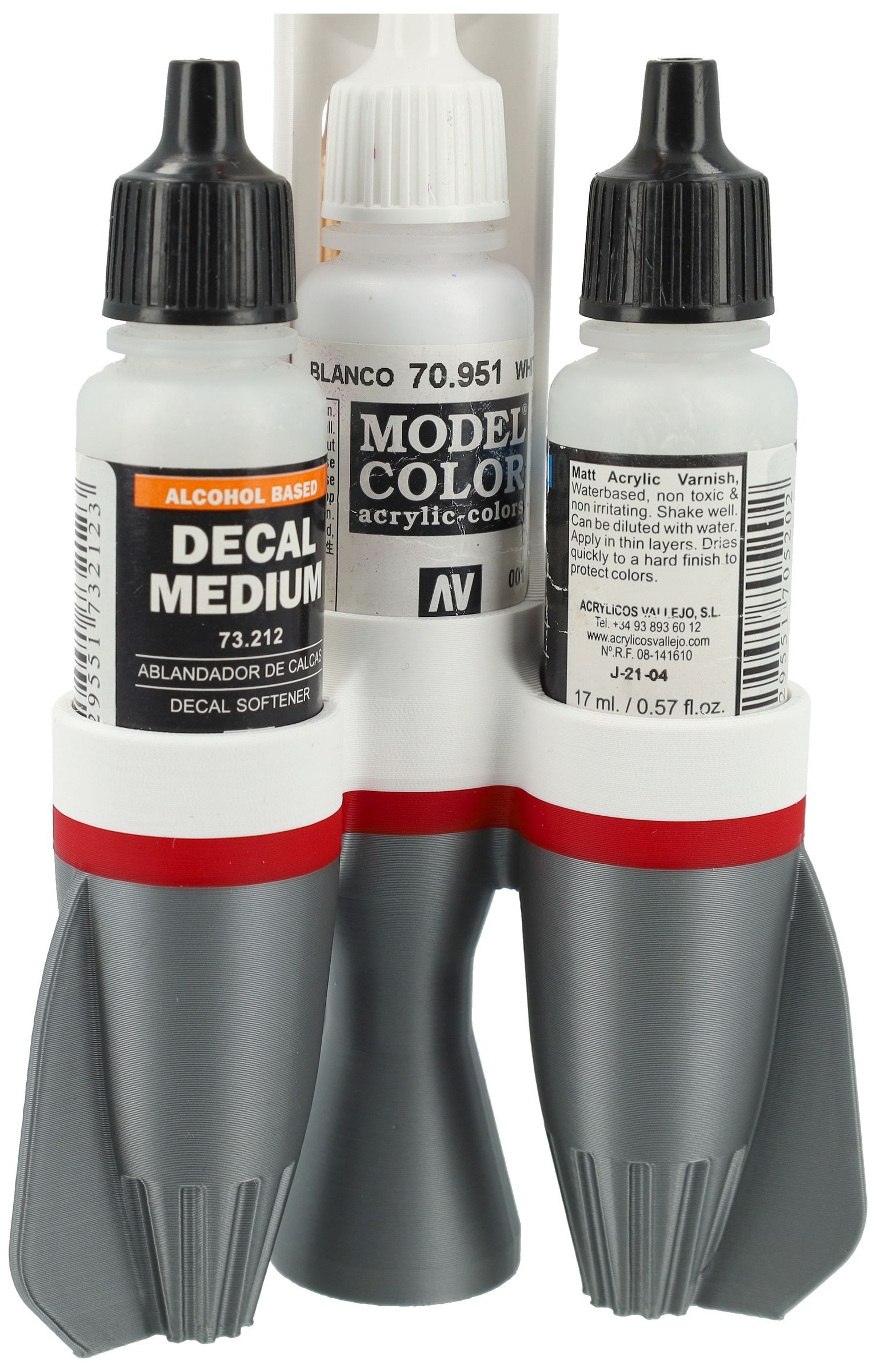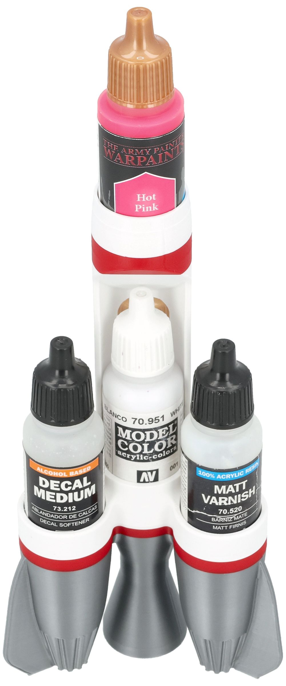 A compact and fun storage solution for organizing up to five Vallejo paint bottles, ideal for keeping your miniature and model paints neatly arranged and always within easy reach on your hobby desk.