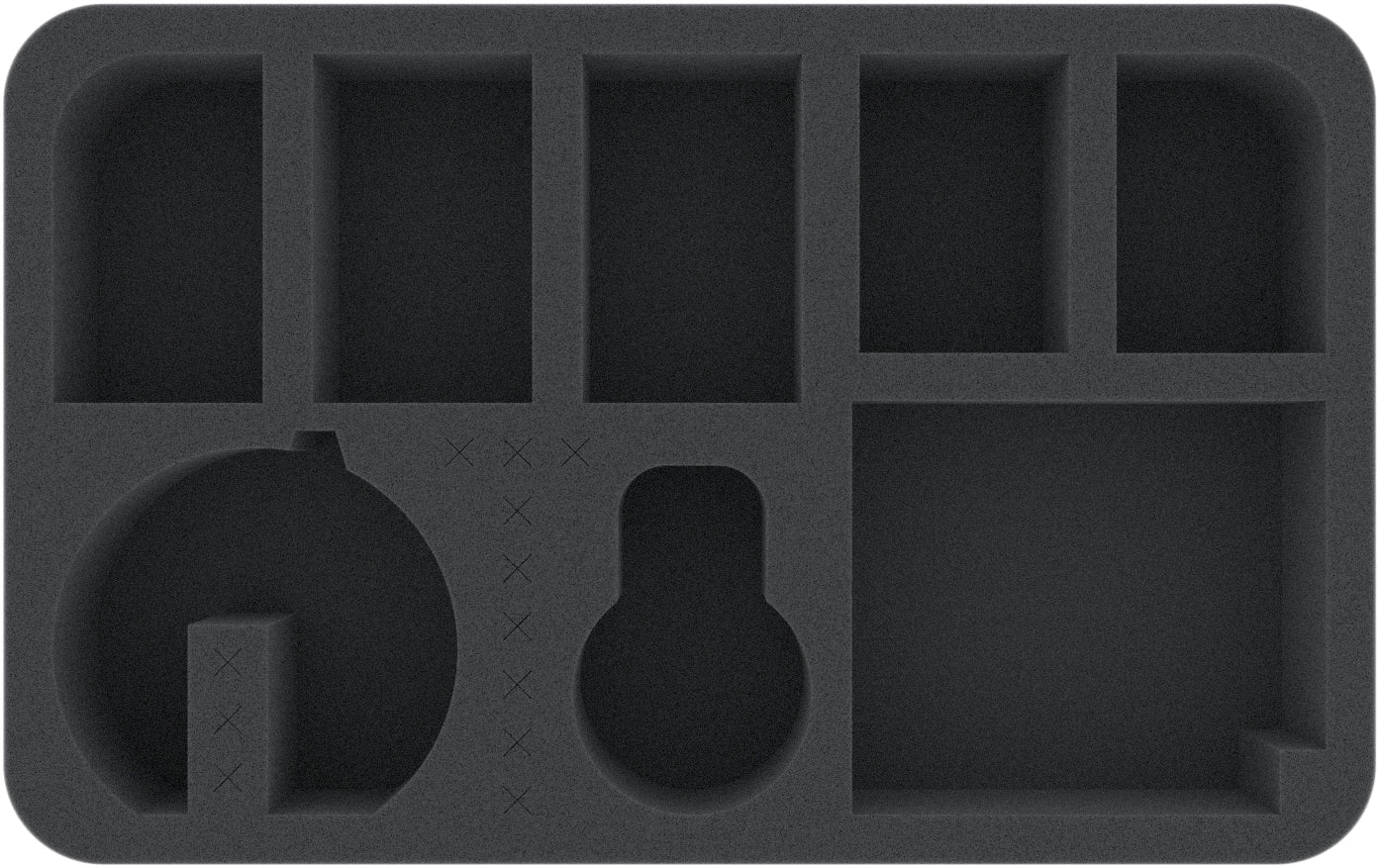 The dimension of the foam tray is 275 mm x 172 mm x 50 mm height. The tray provides the following slots: