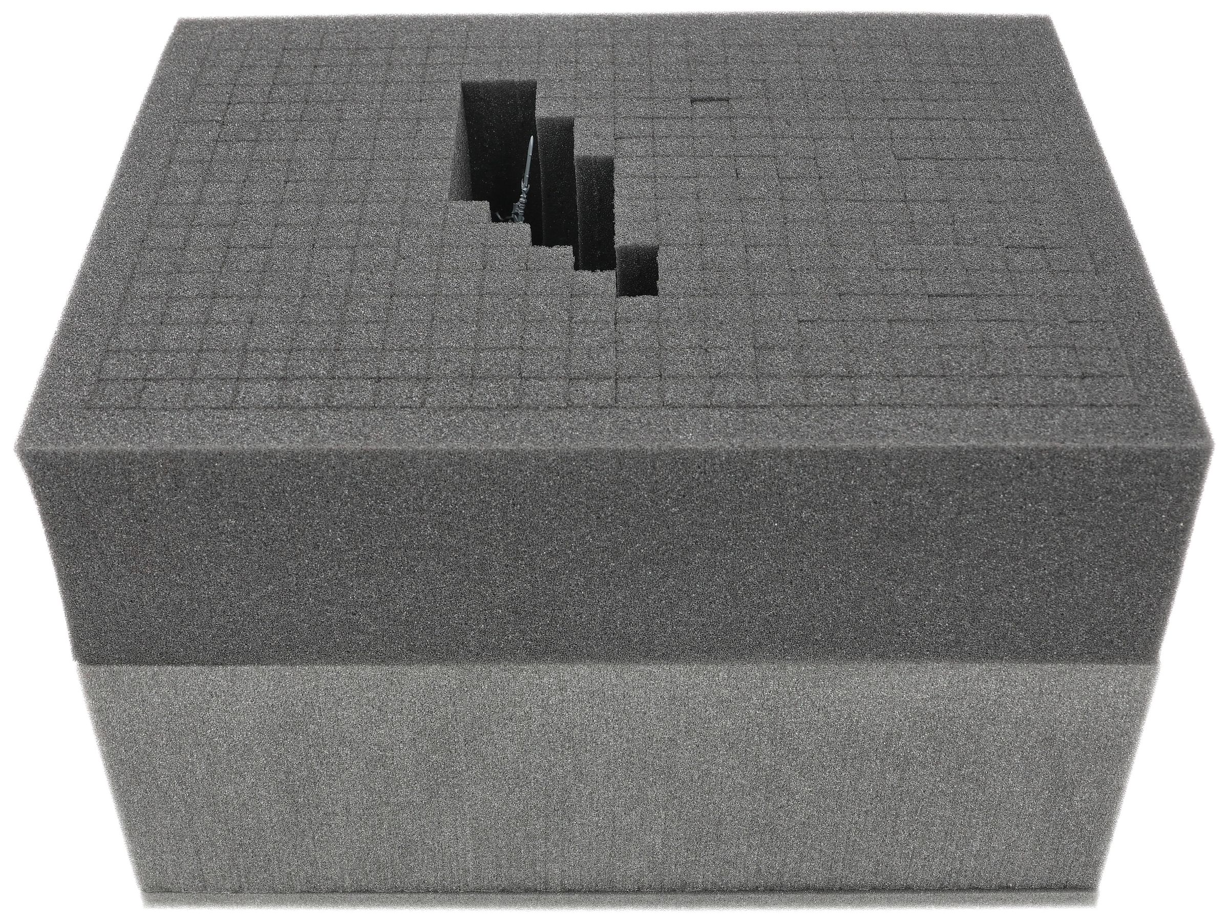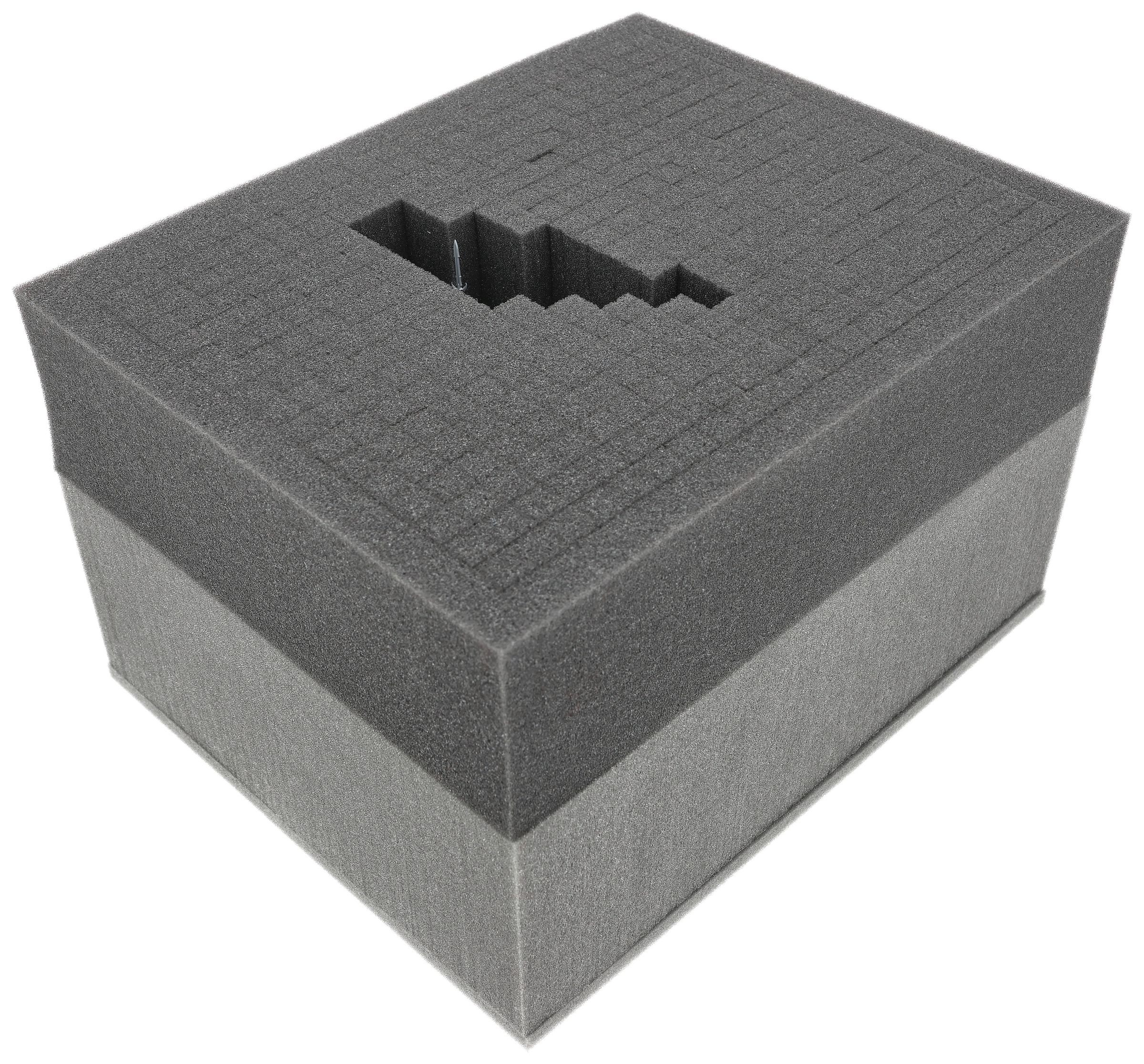 The Full-Size foam tray has the dimensions: 345 mm x 275 mm x 125 mm total height (115 mm usable height + 10 mm foam base).