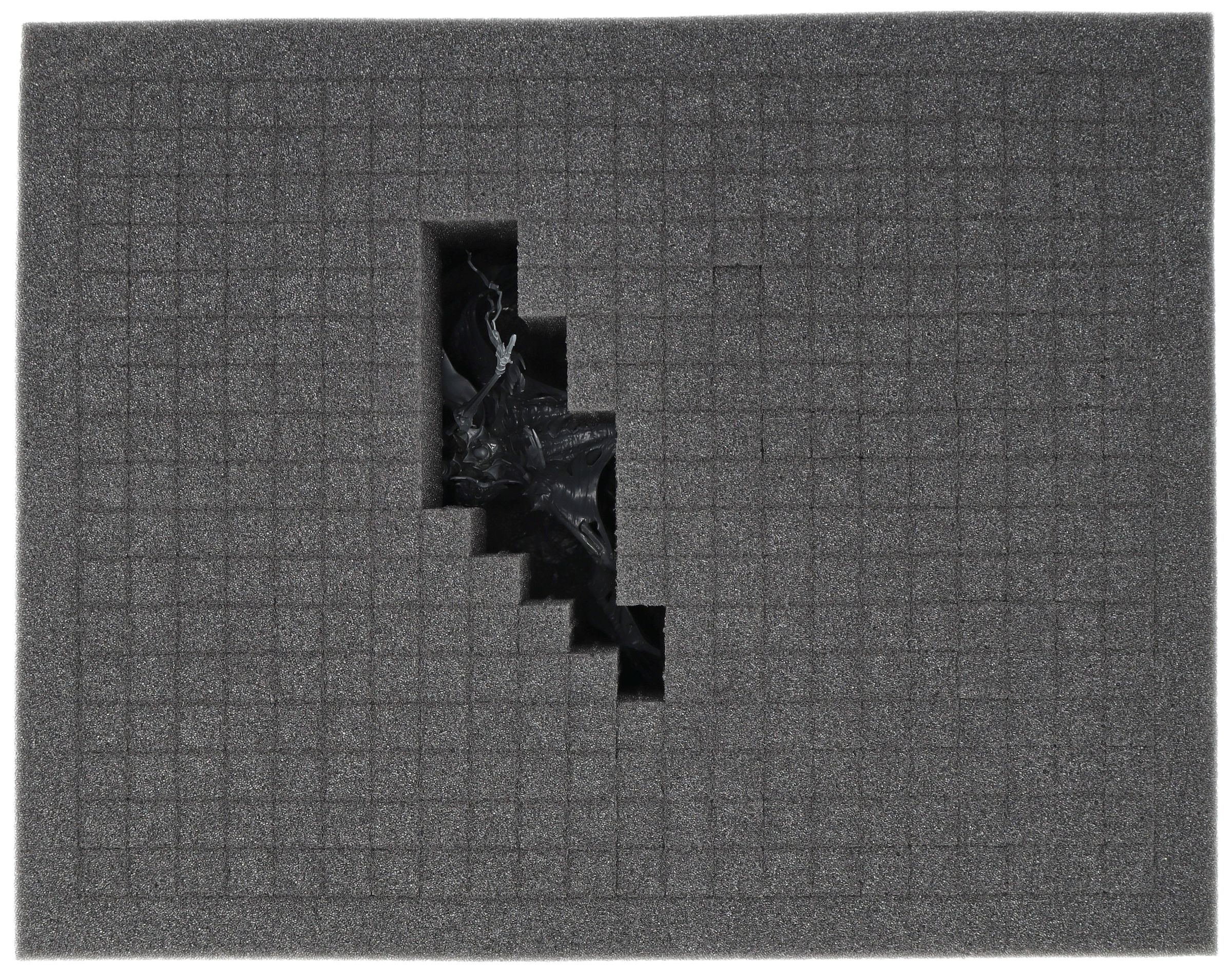 Since the large model requires a little more space and protrudes differently depending on its build, the set includes a pick and pluck foam mat. Simply remove the plucks from the grid foam at the point of the model's protrusions and place the pick and pluck foam on the insert. This will provide optimal protection for your miniature.