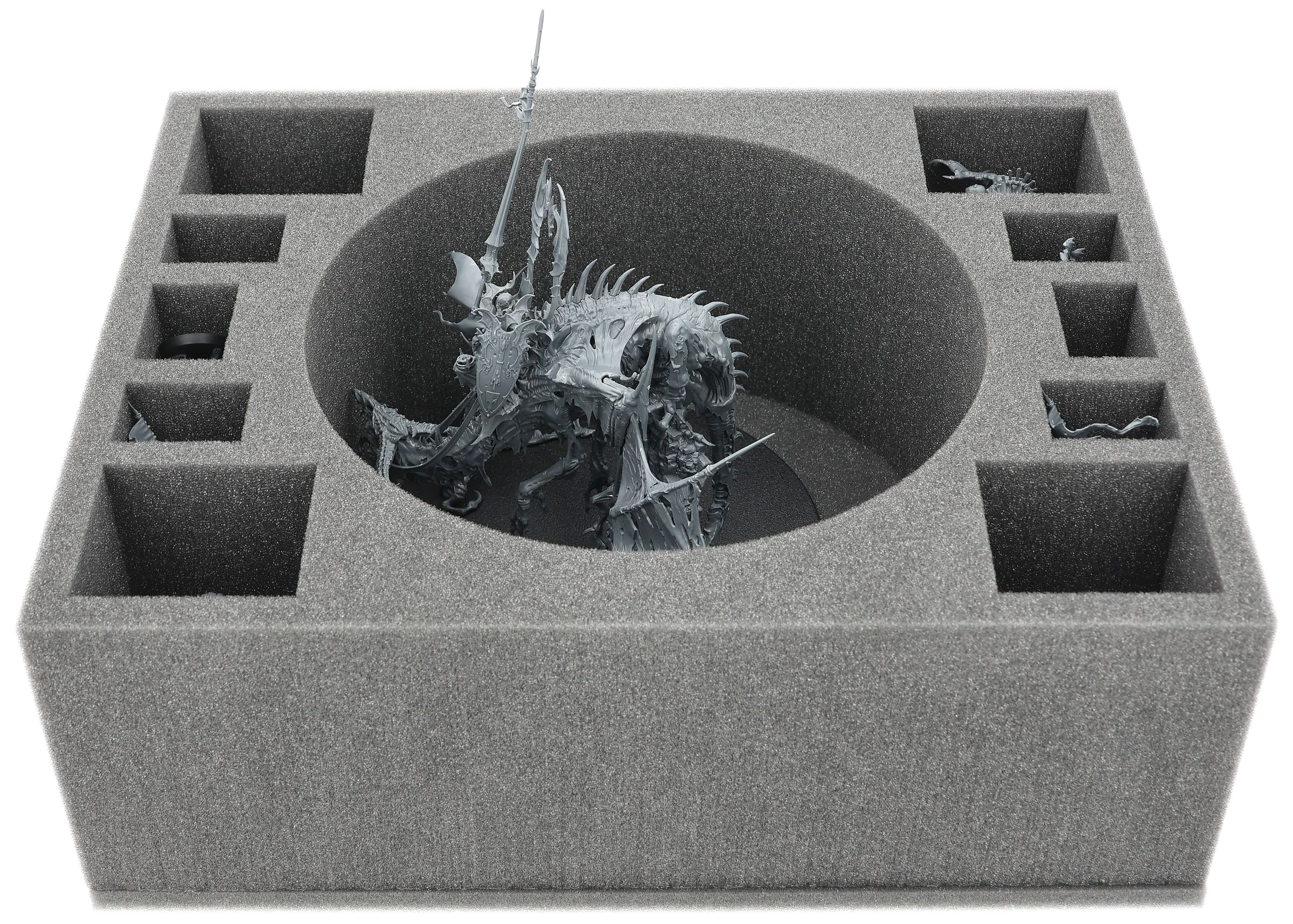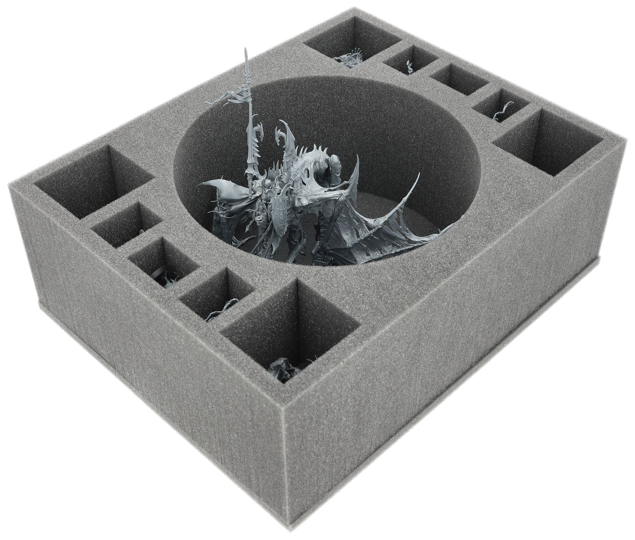 The fact that one of the most powerful vampires in the Realm is also one of the most awkward models to transport in your Soulblight Gravelords collection need not be a cause for tragedy. With this Feldherr foam set, you can easily ensure that Prince Vhordrai, Lord of the Crimson Keep, arrives on the battlefield safely, undamaged, and in all his glory.