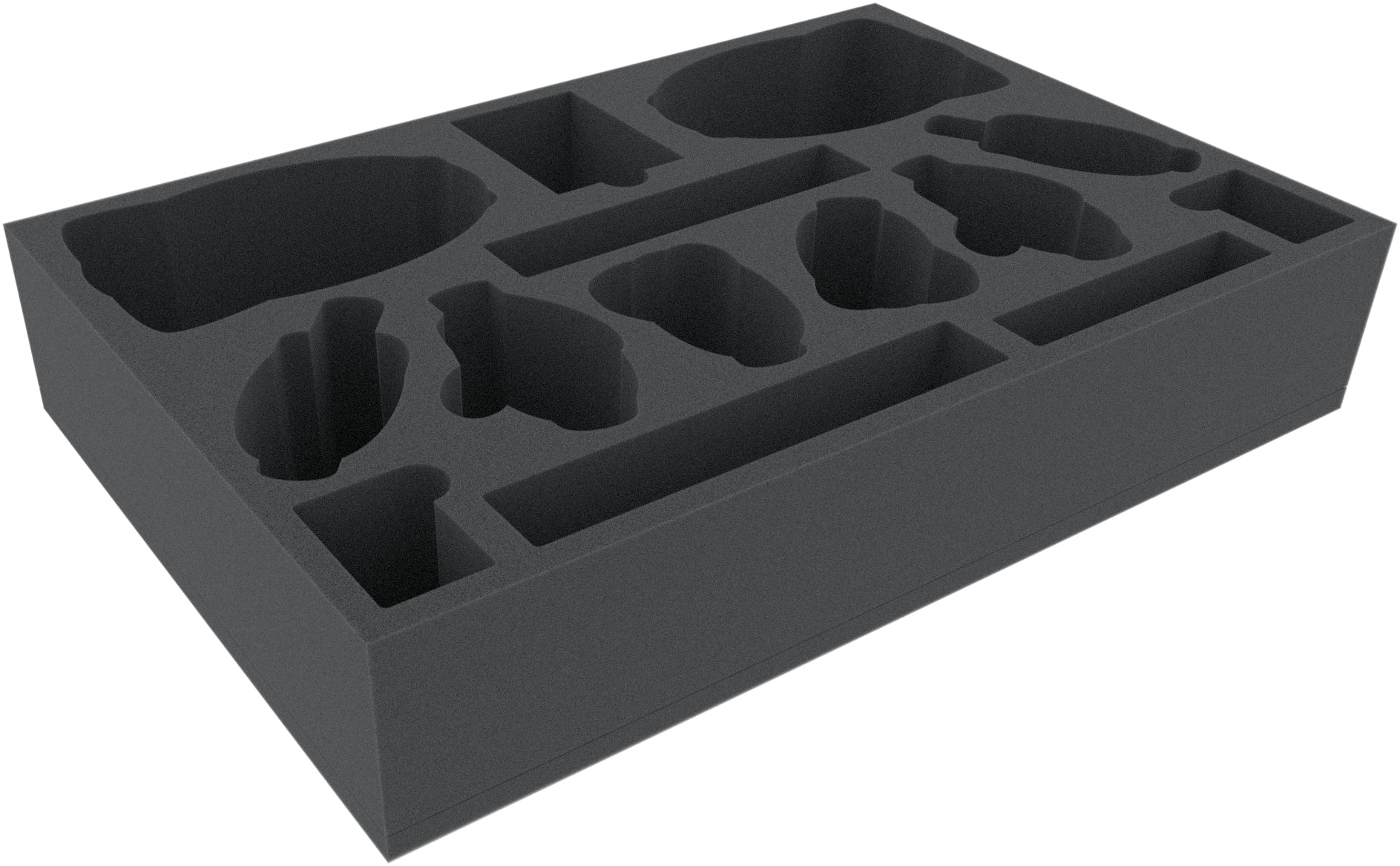 - The foam tray has the following dimensions: 425 mm x 285 mm x 80 mm total height (70 mm usable height + 10 mm foam base)