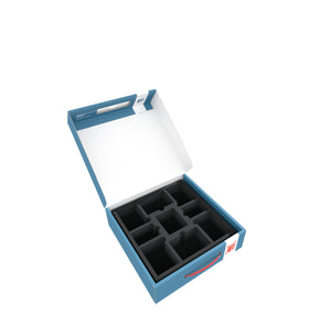 Choose the right combination of inlay, box and bag to store your collection neatly and take it with you to the next battle in comfort.